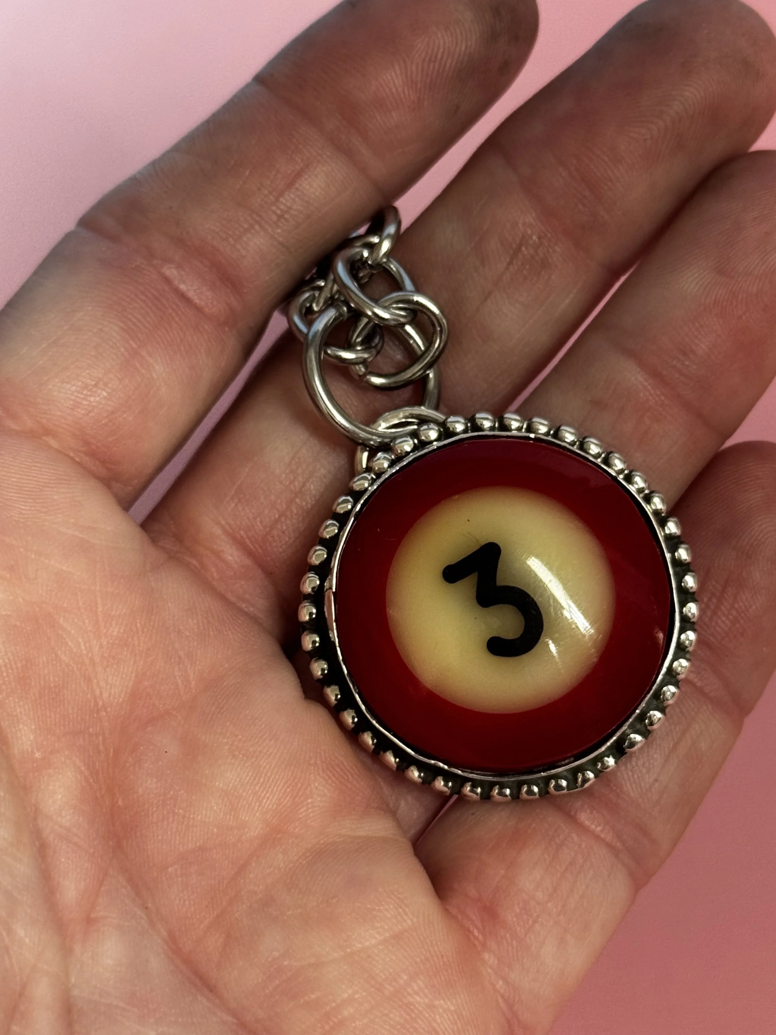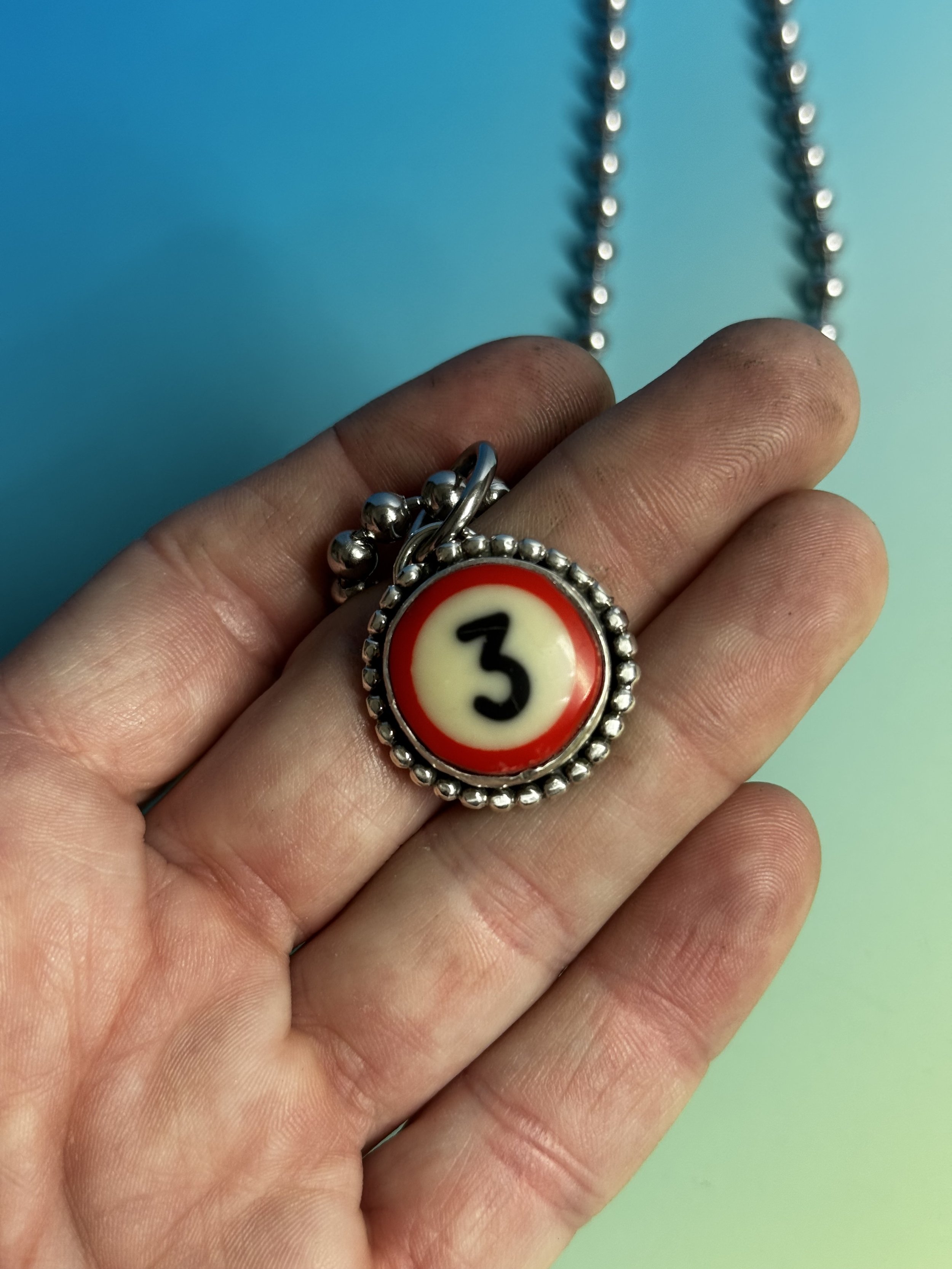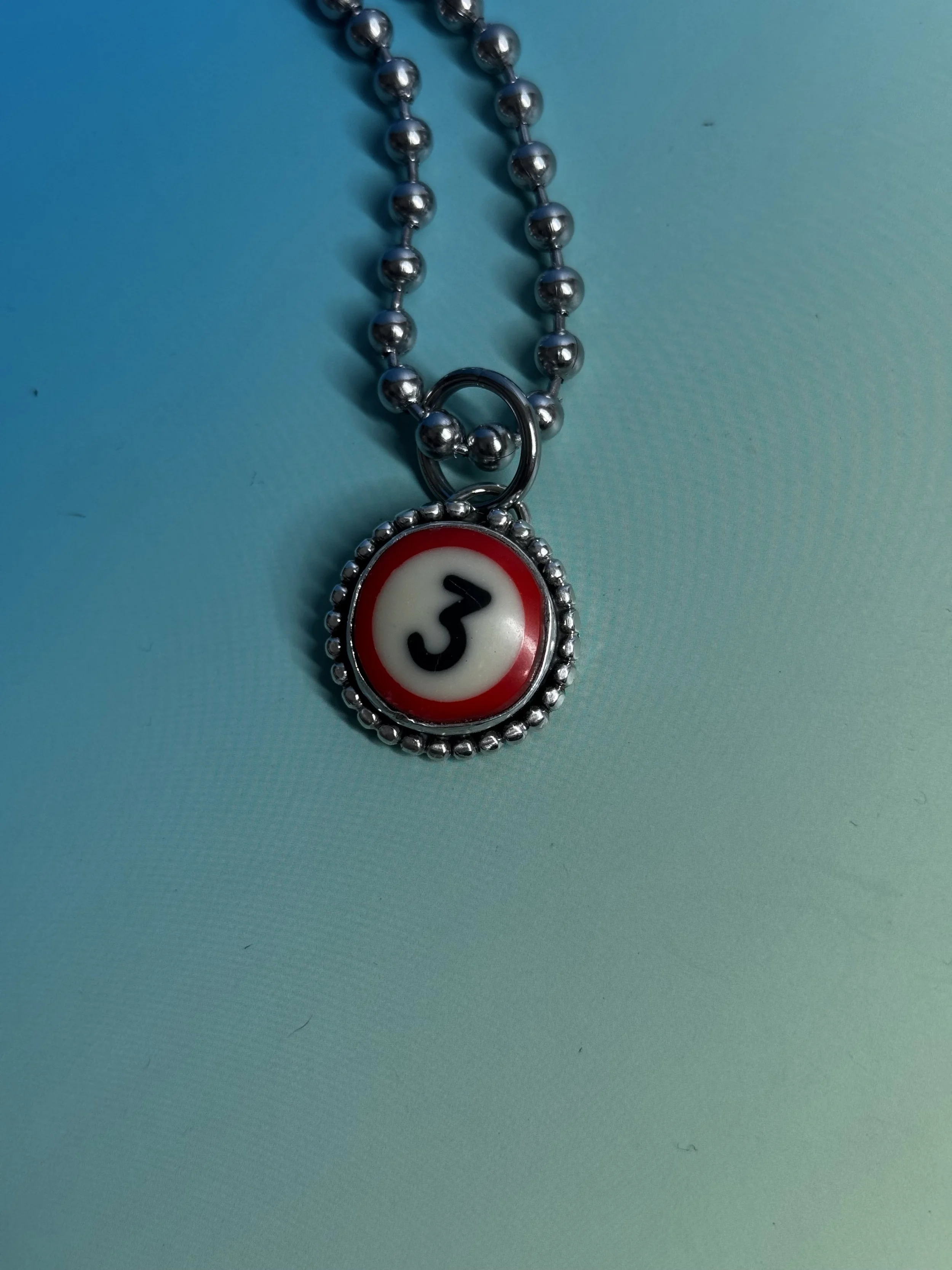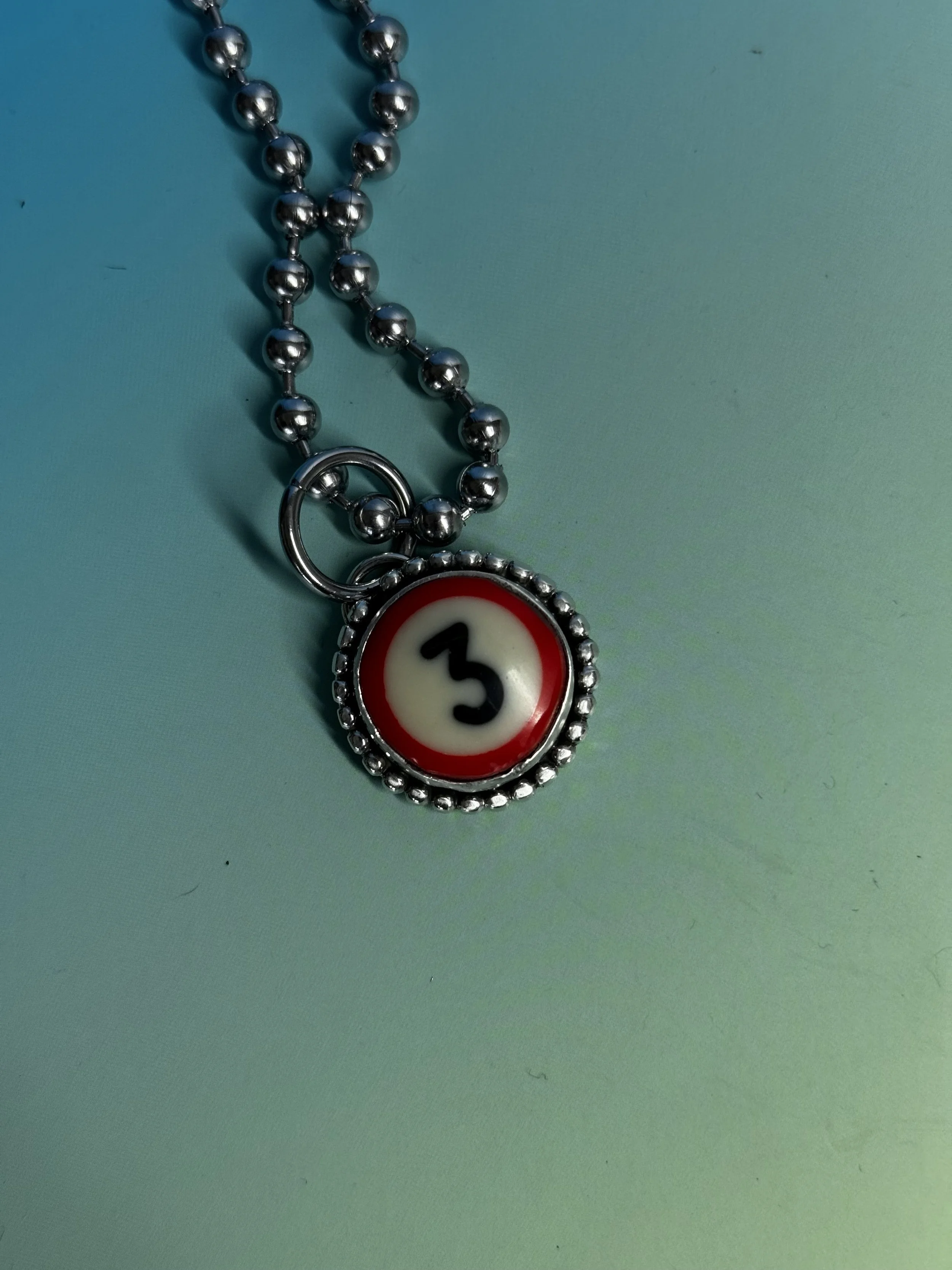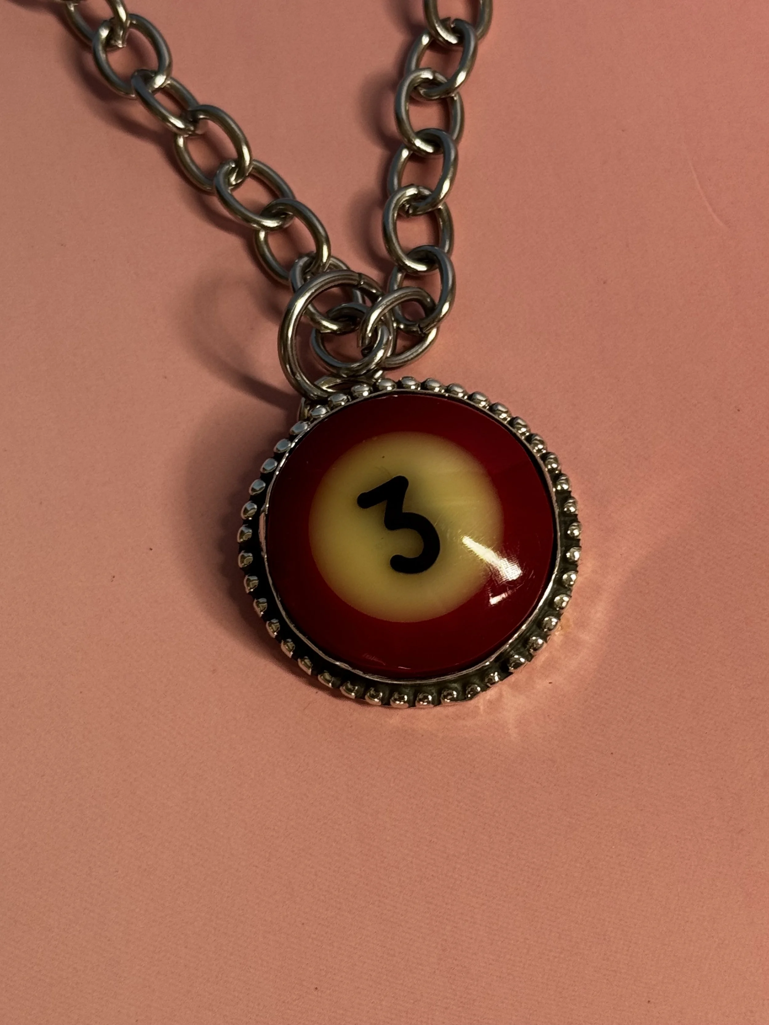 RED 3 MINI ROUND BILLIARD NECKLACE W/CHAIN