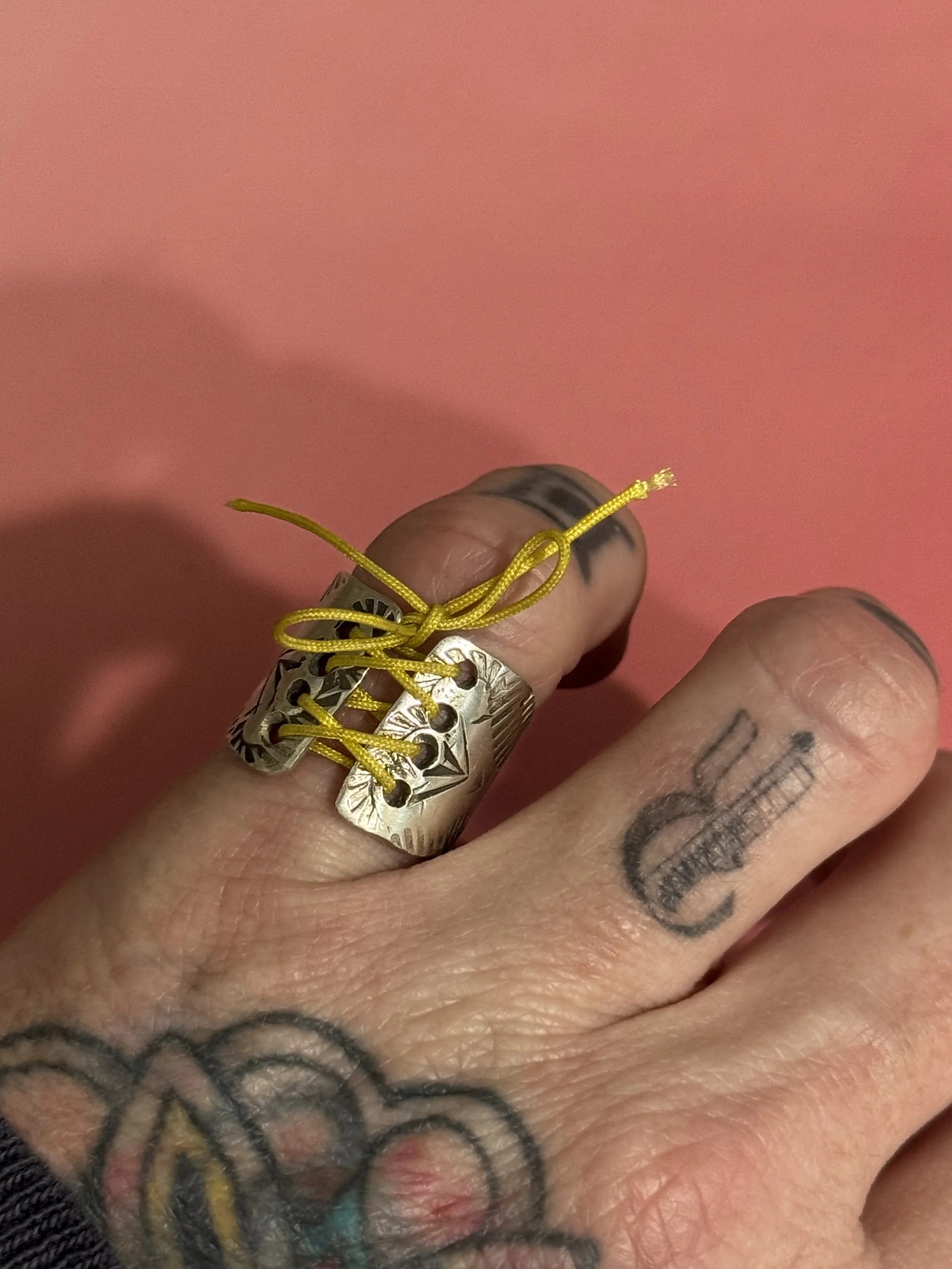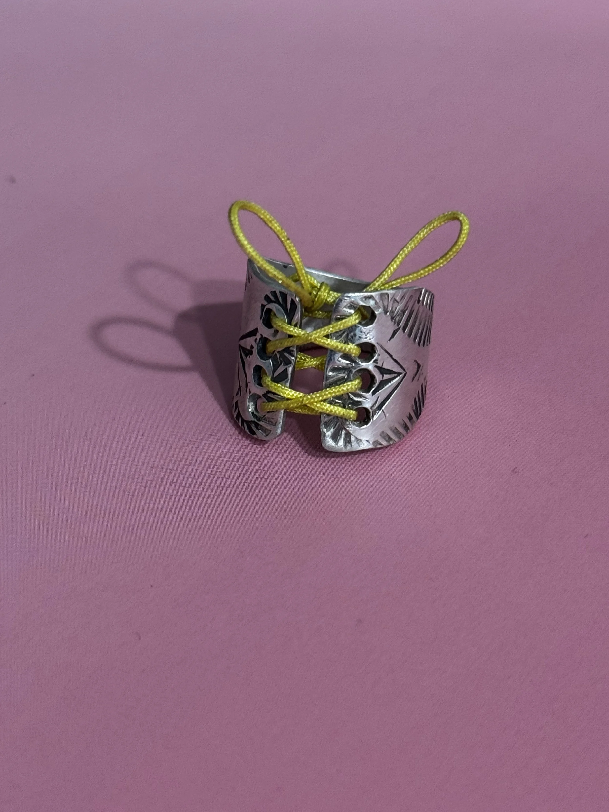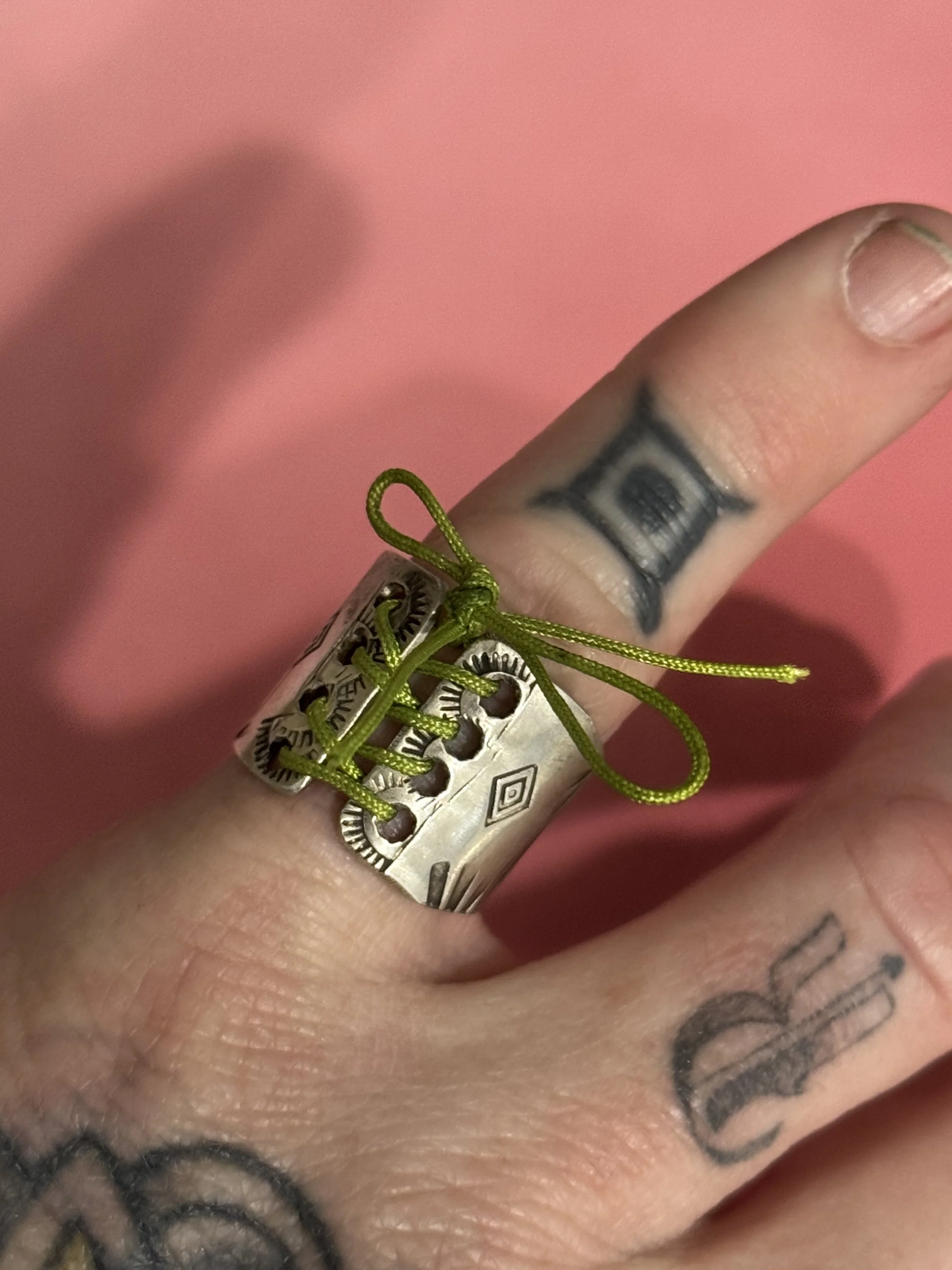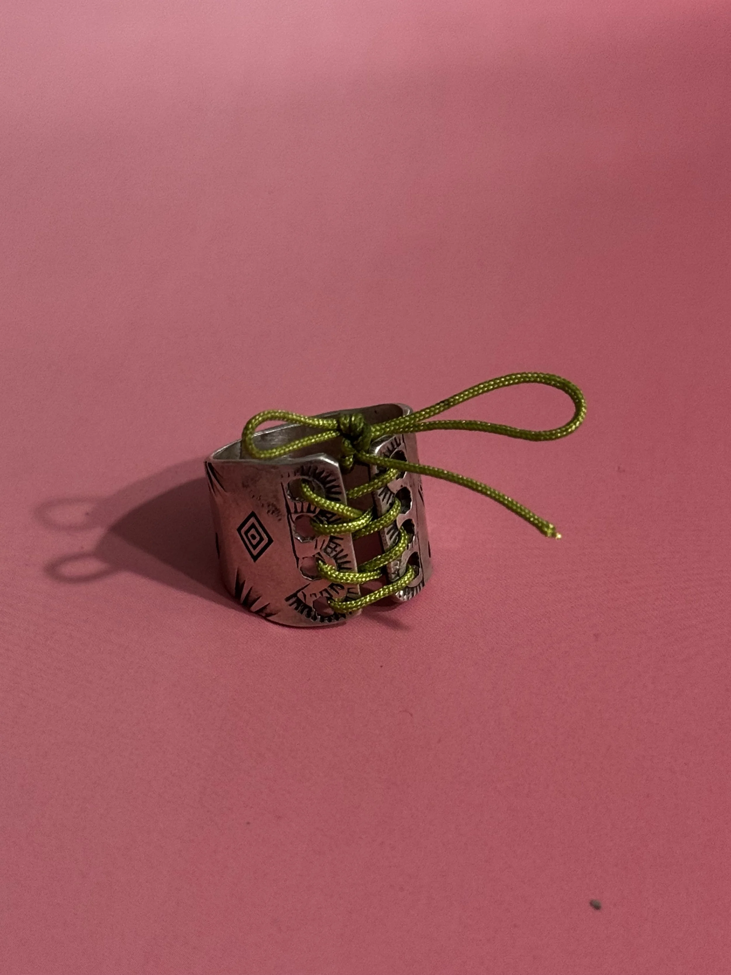 Corset Ring - Chartreuse Green Lacing - Size 7