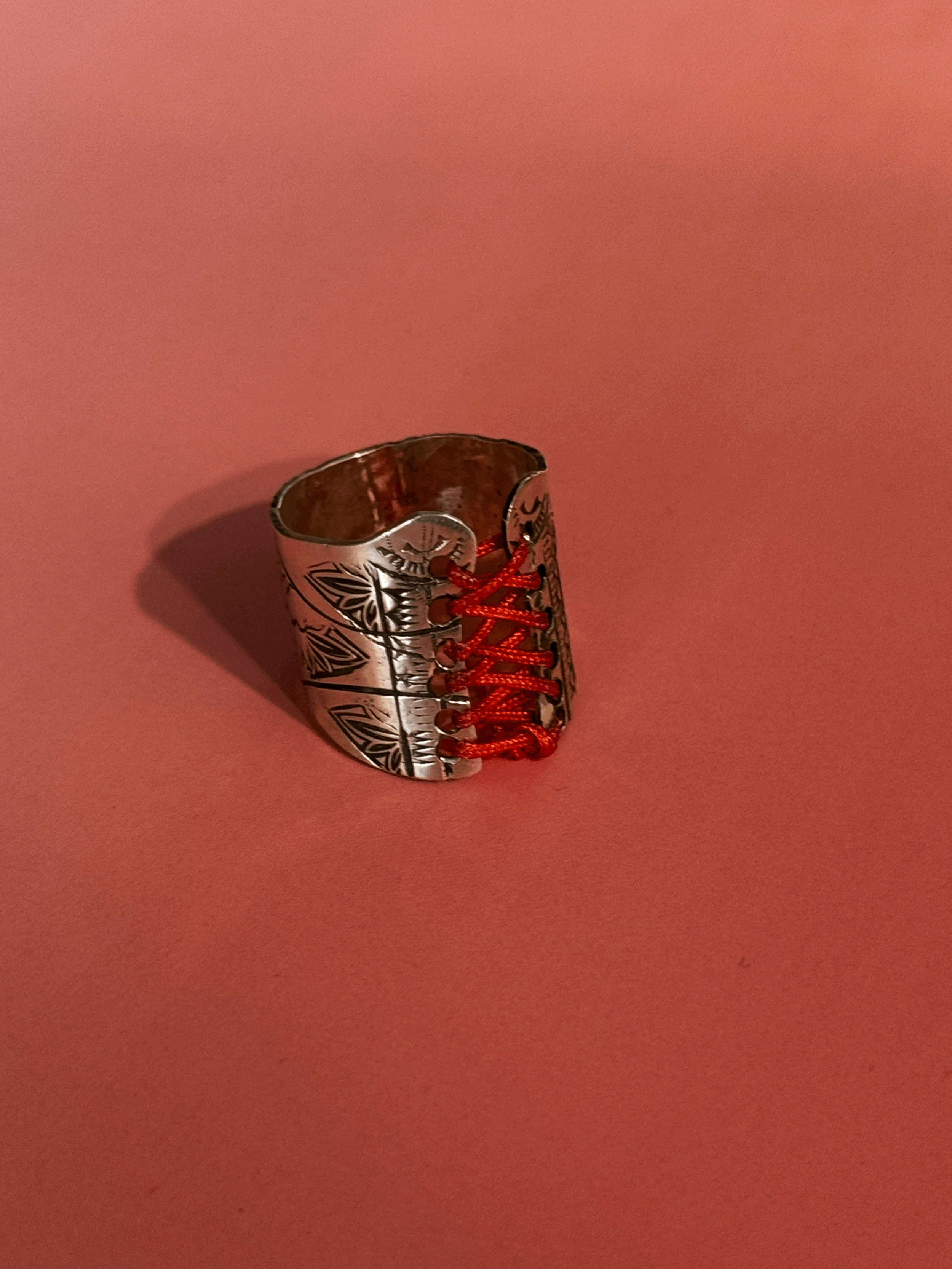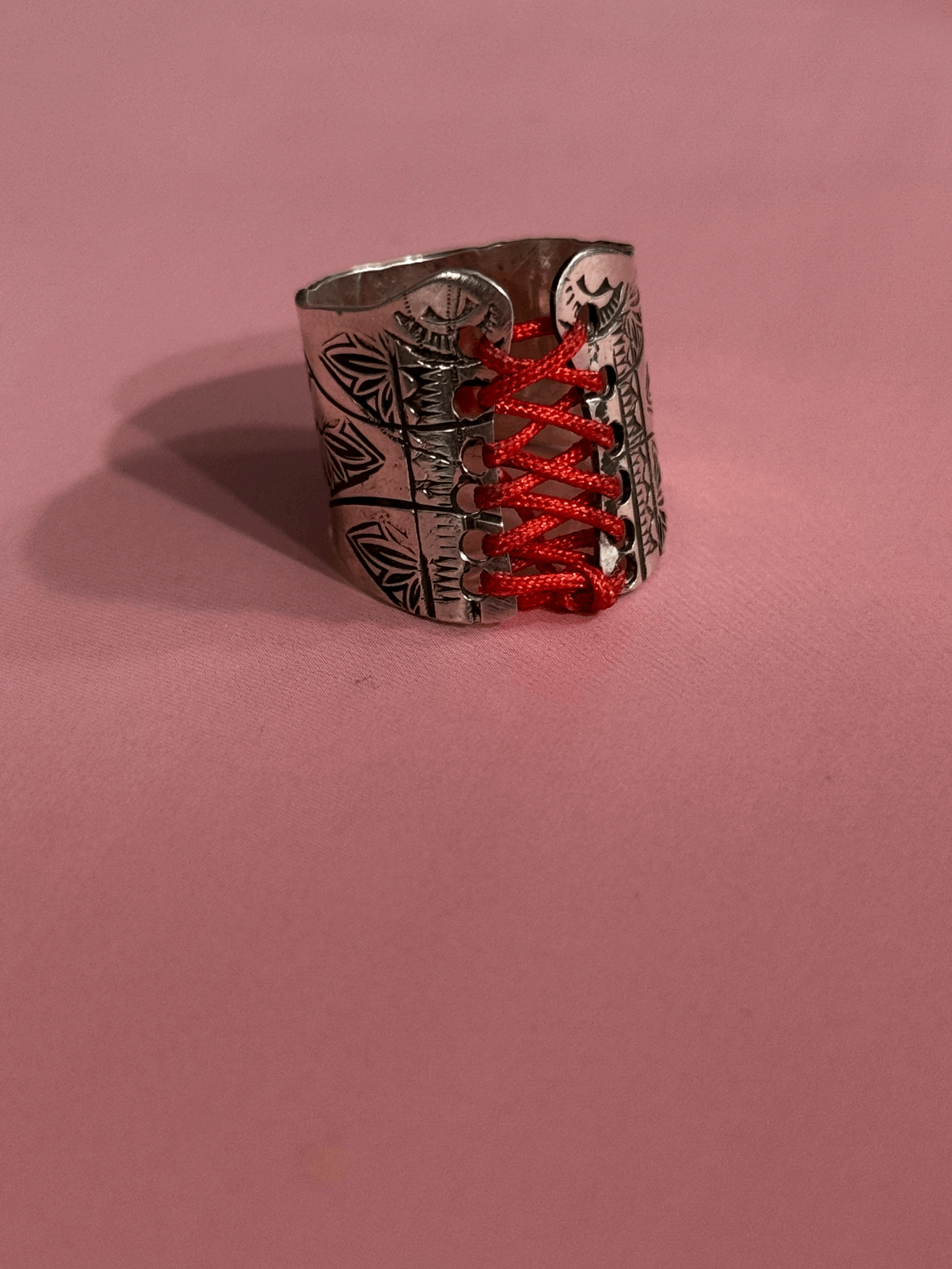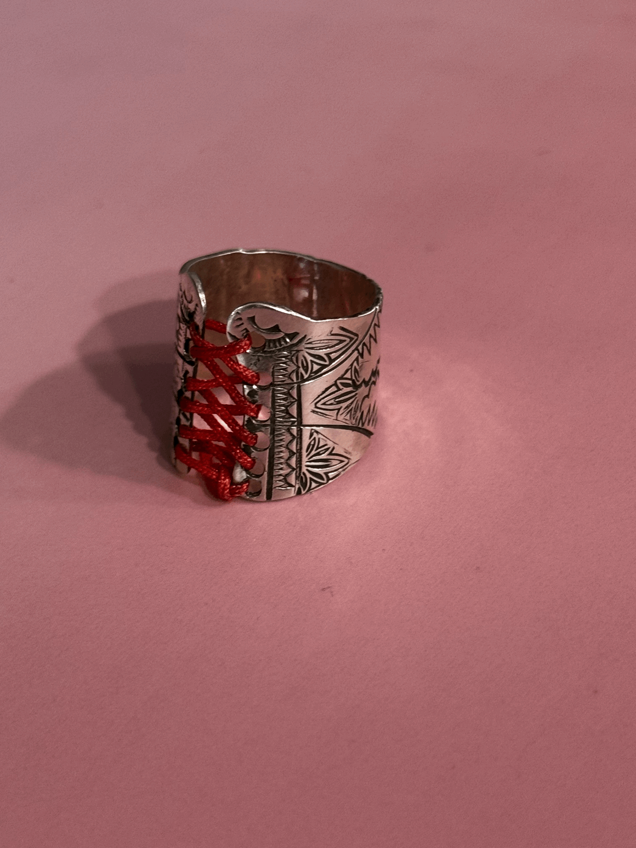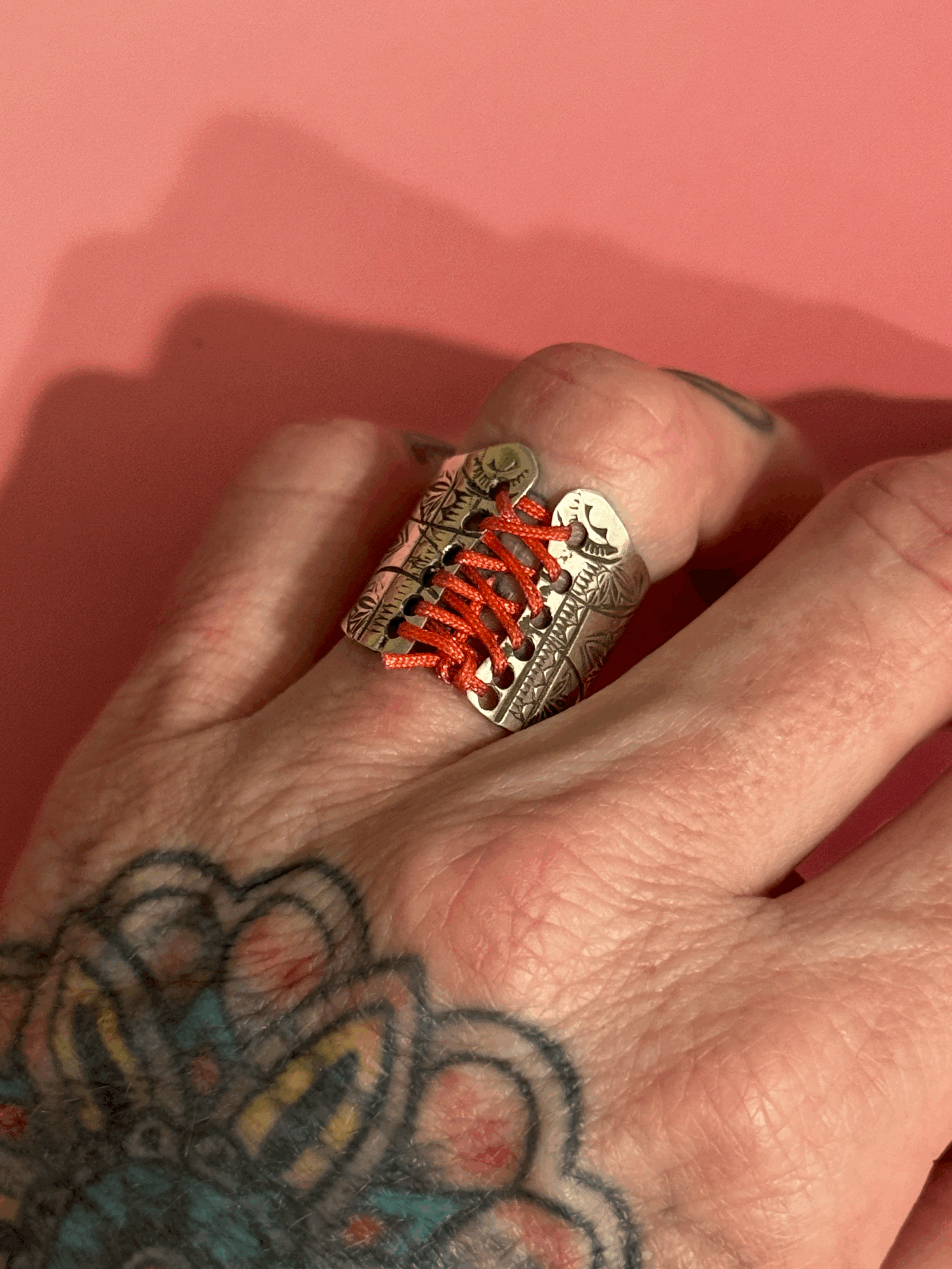 Corset Ring - Chartreuse Green Lacing - Size 7