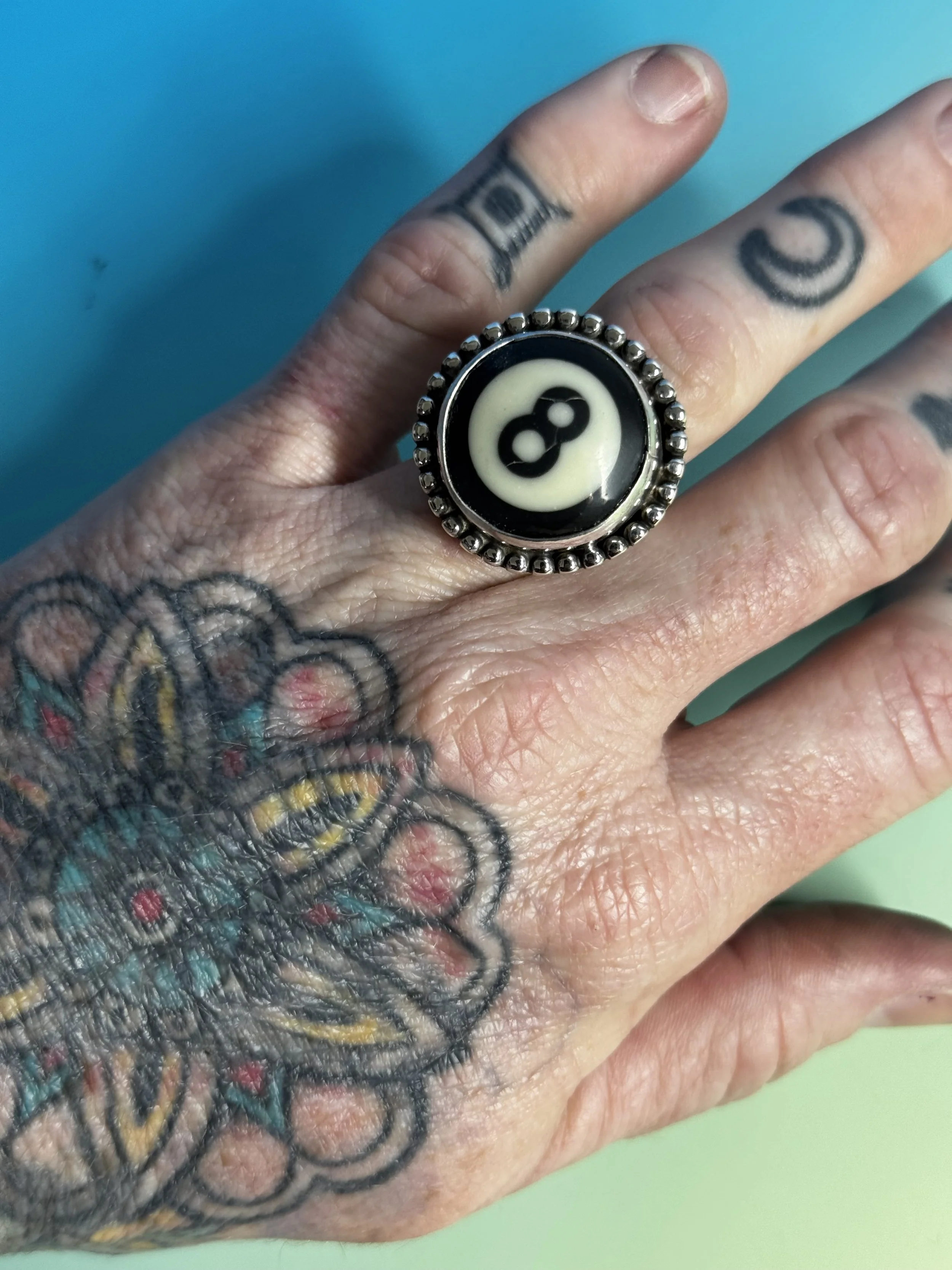SUNBURST BILLIARD BALL SCRAP RING SIZE 8.5
