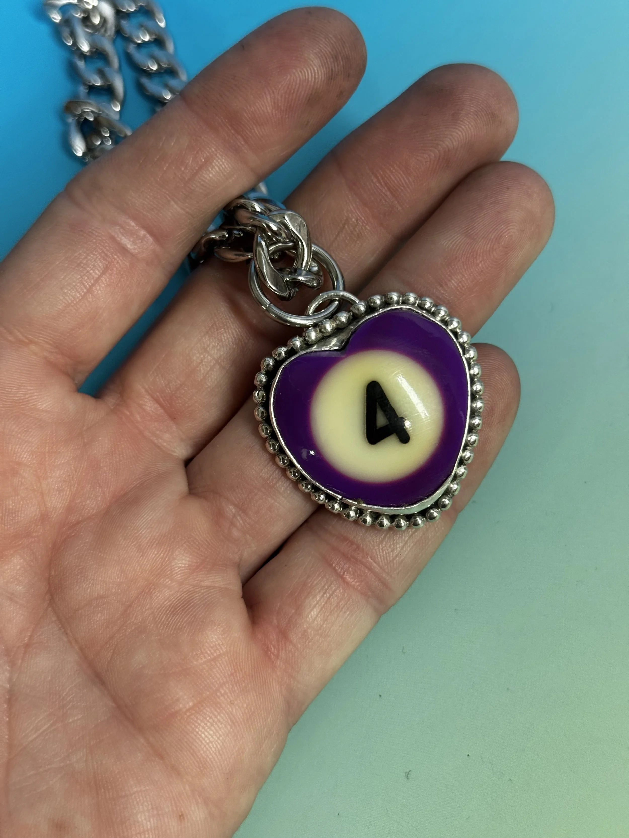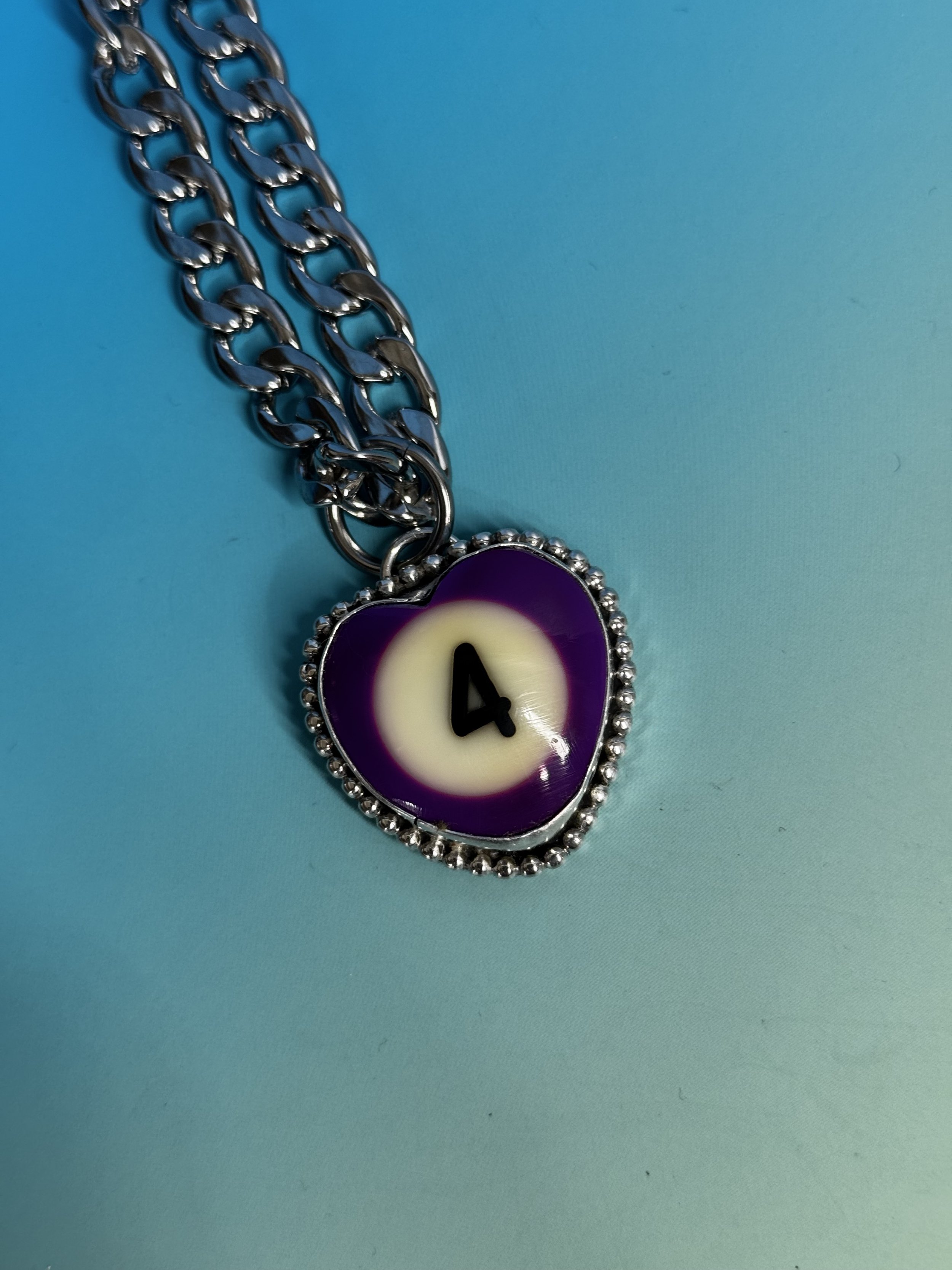 Purple #4 Heart-shaped Billiard Ball Necklace