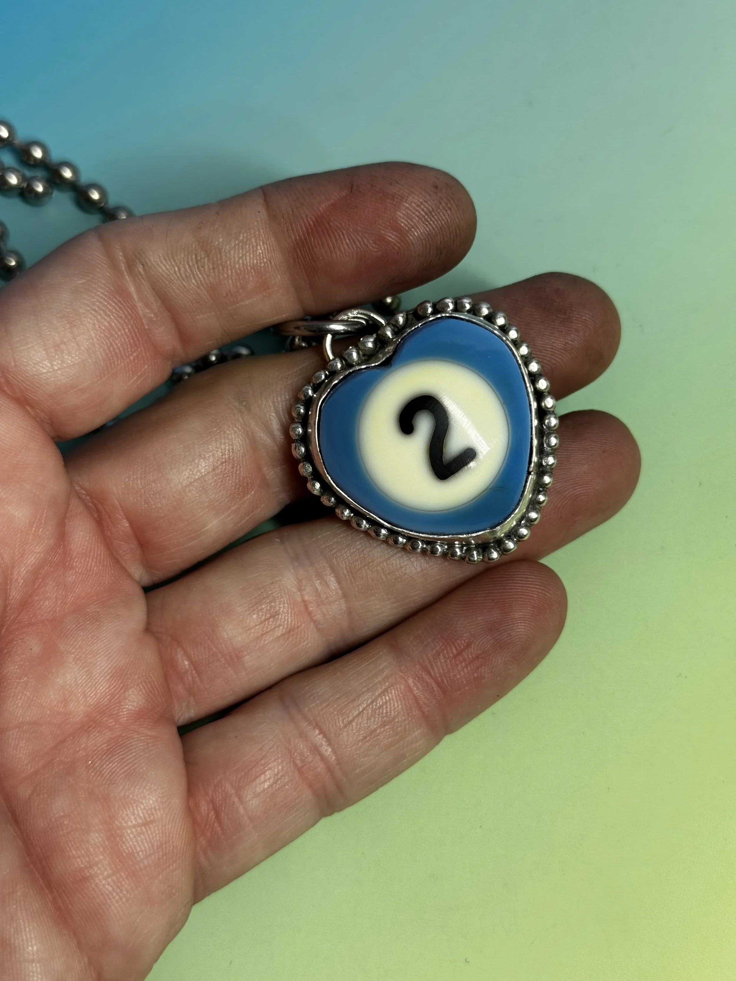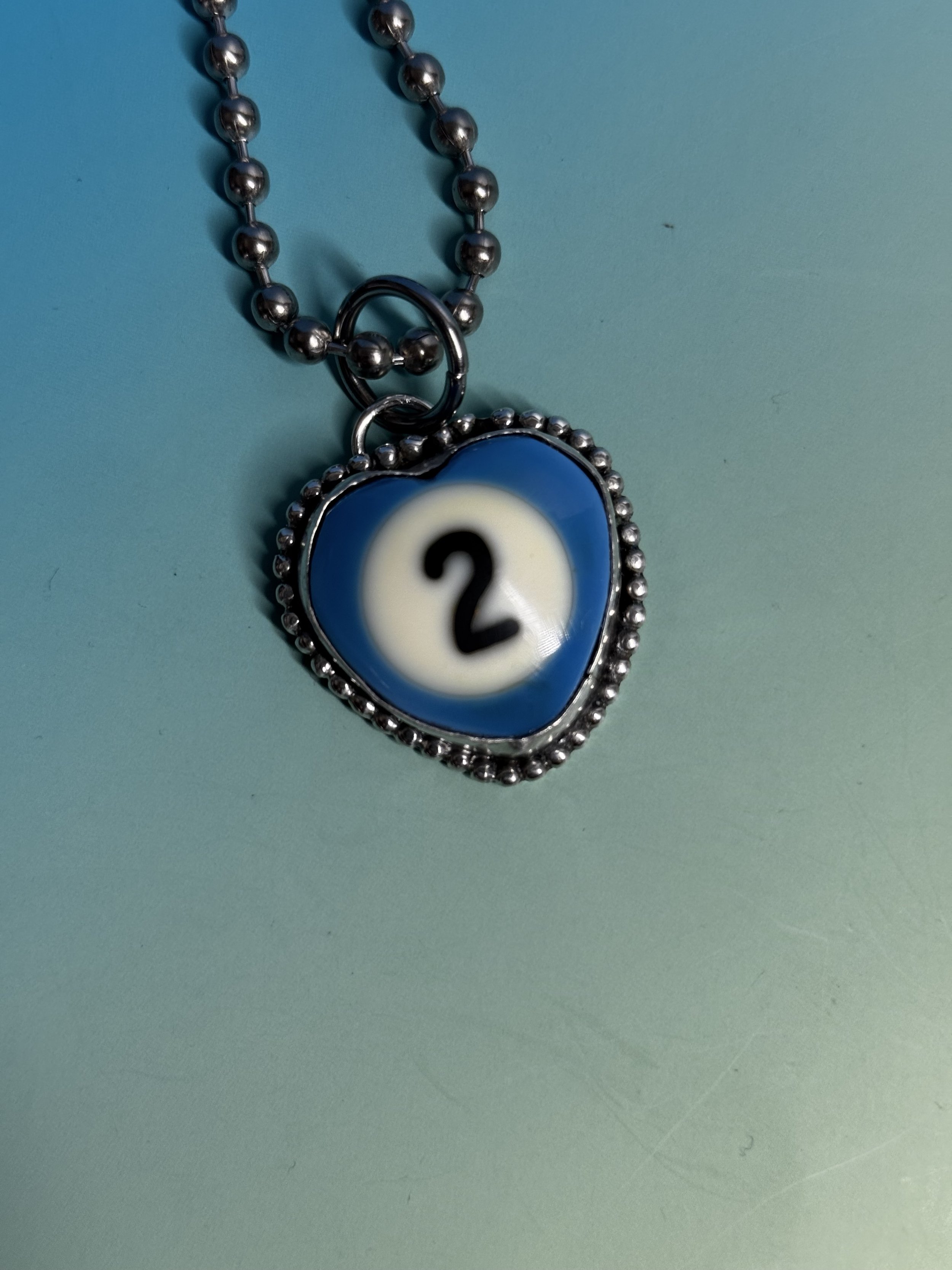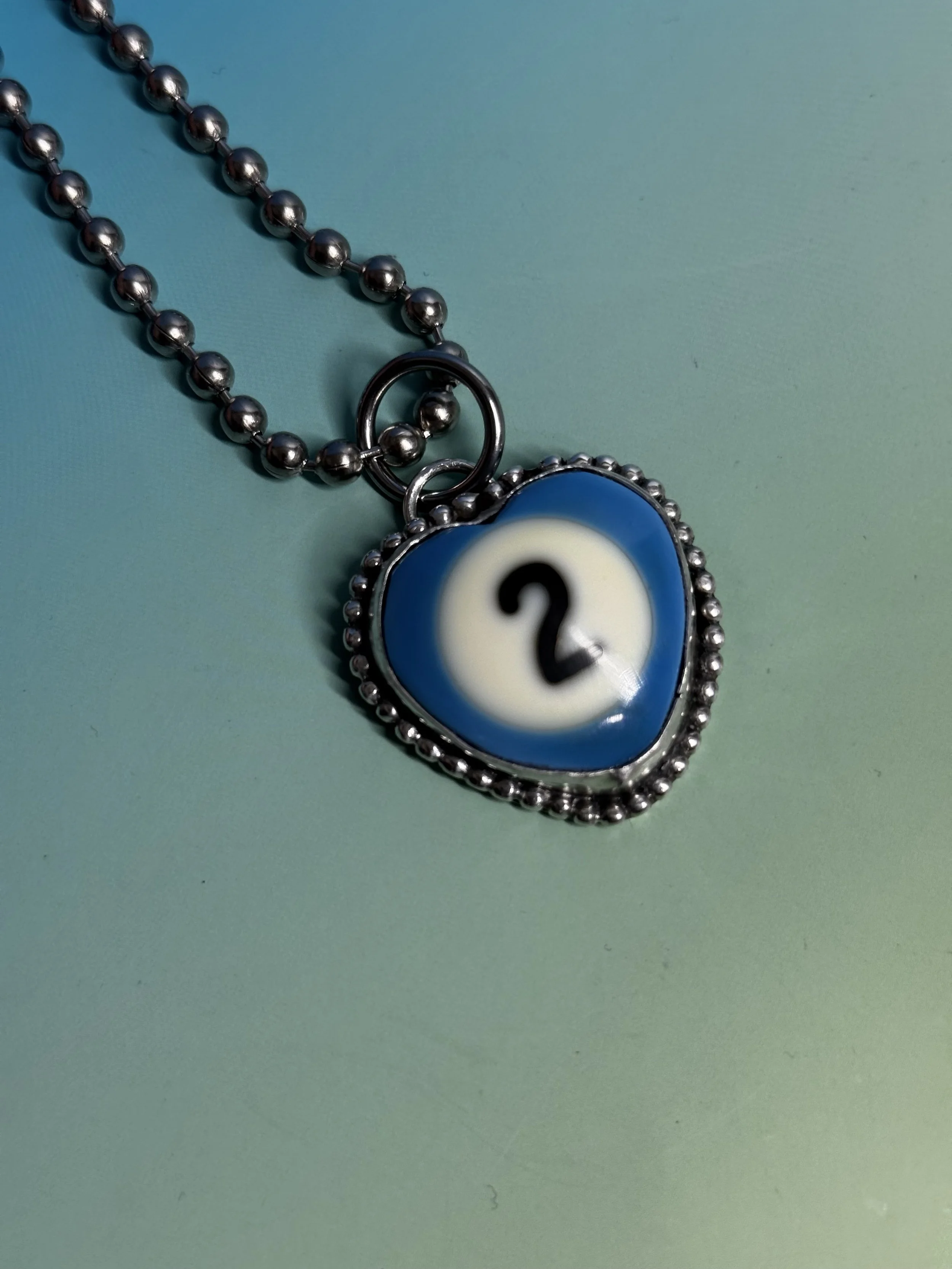 Blue #2 Heart-shaped Billiard Ball Necklace