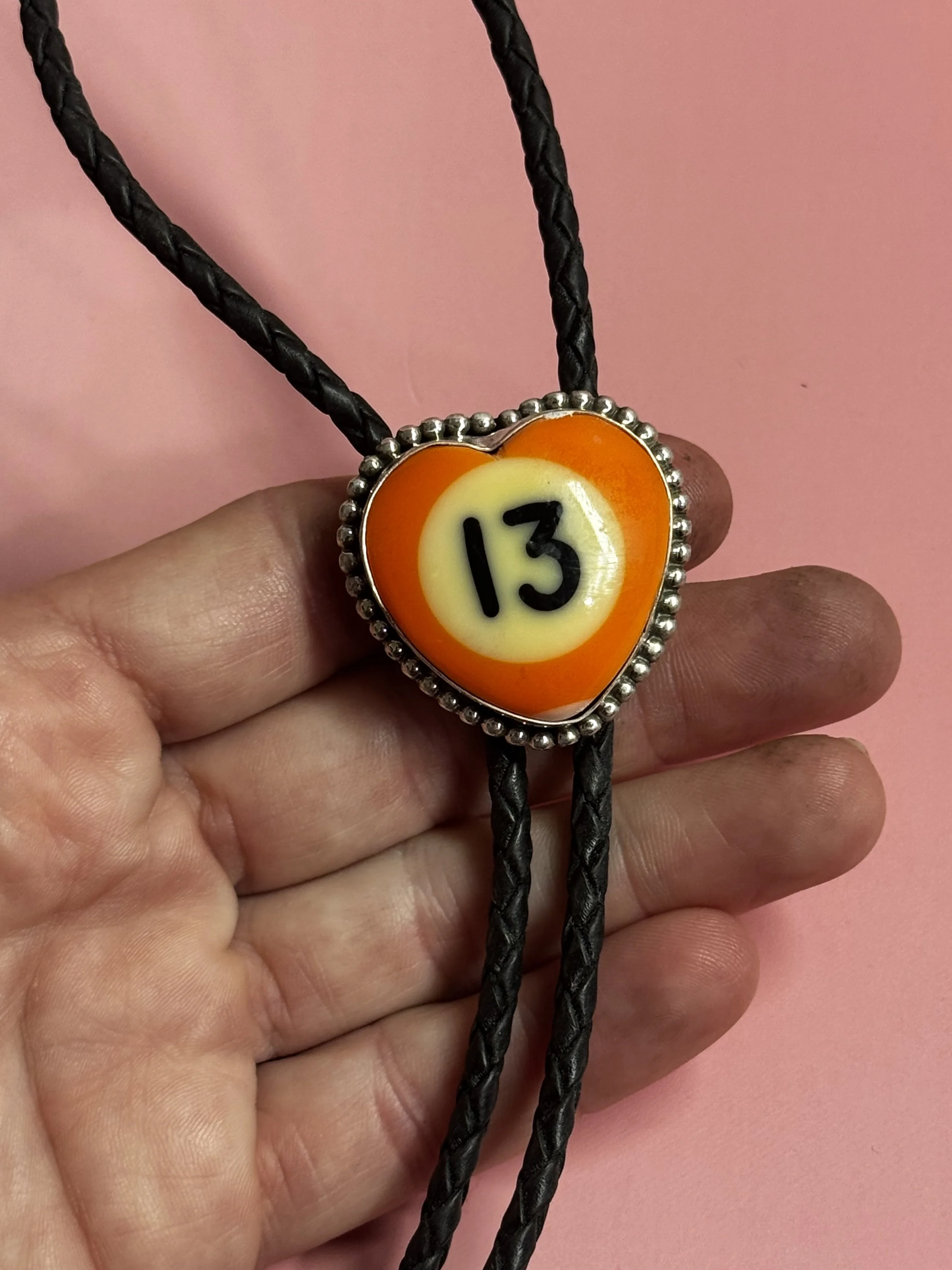 ORANGE HEART-SHAPED 13 BILLIARD BALL BOLO
