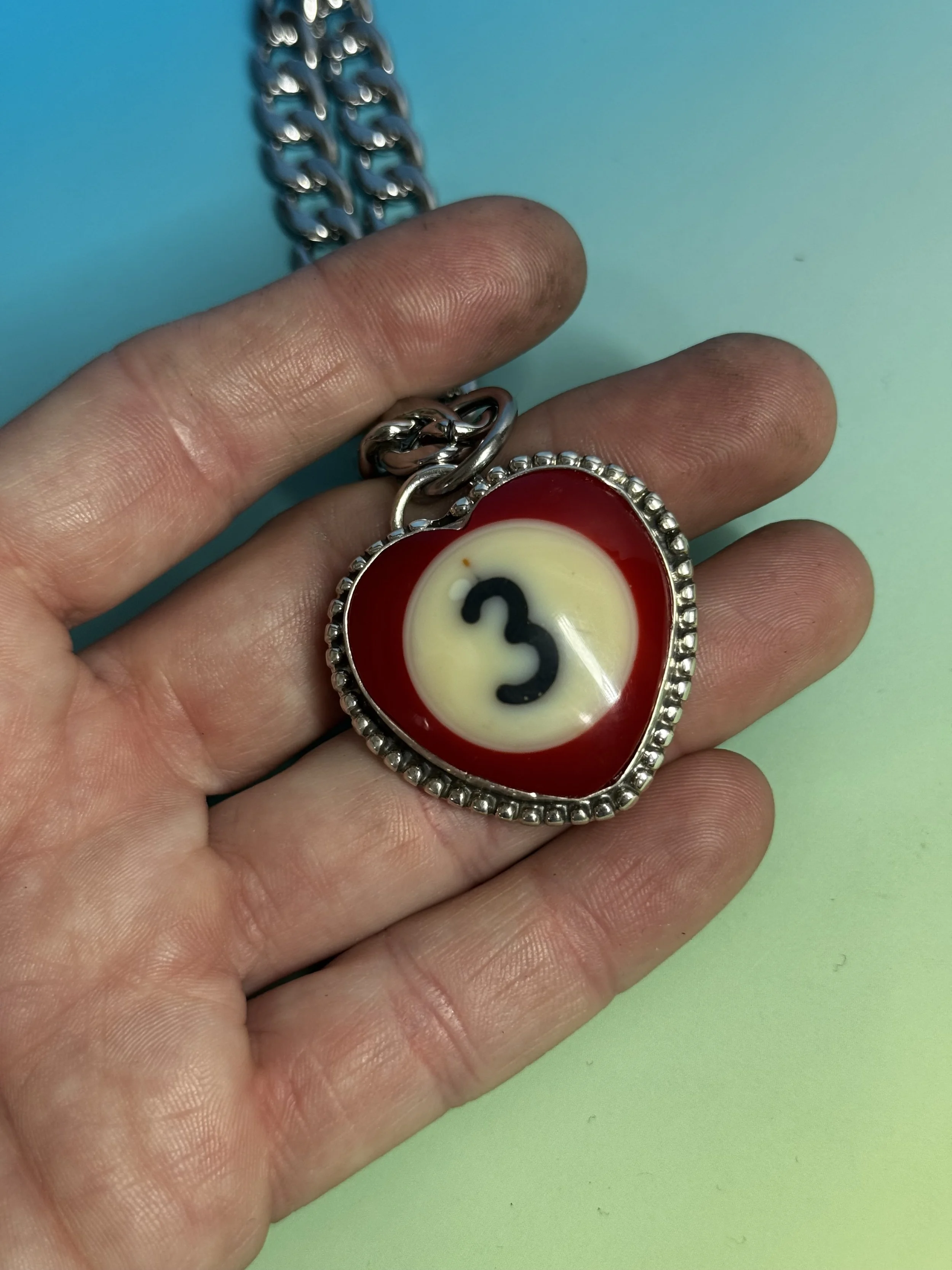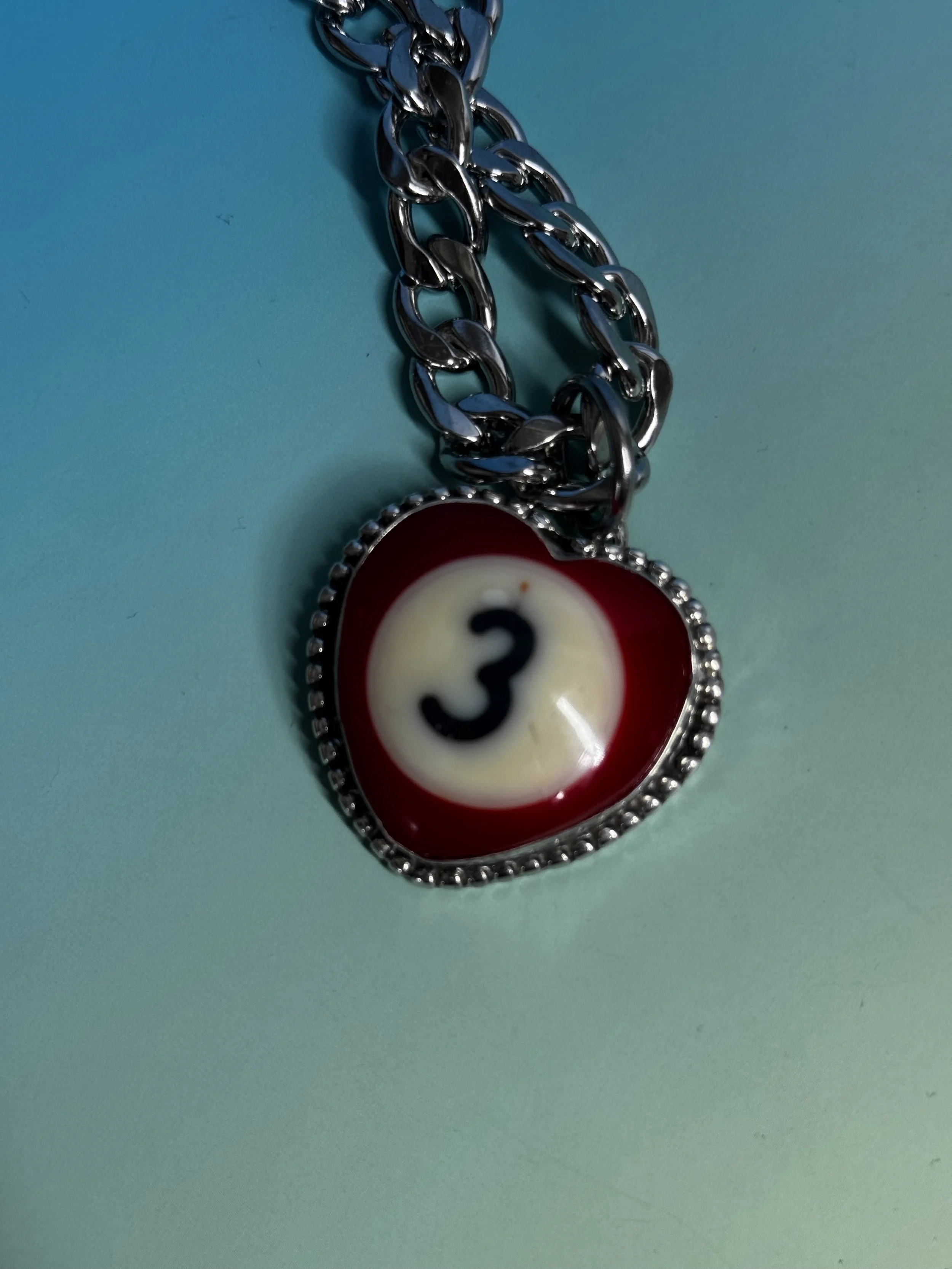 Pinky-red #11 Heart-shaped Billiard Ball Necklace