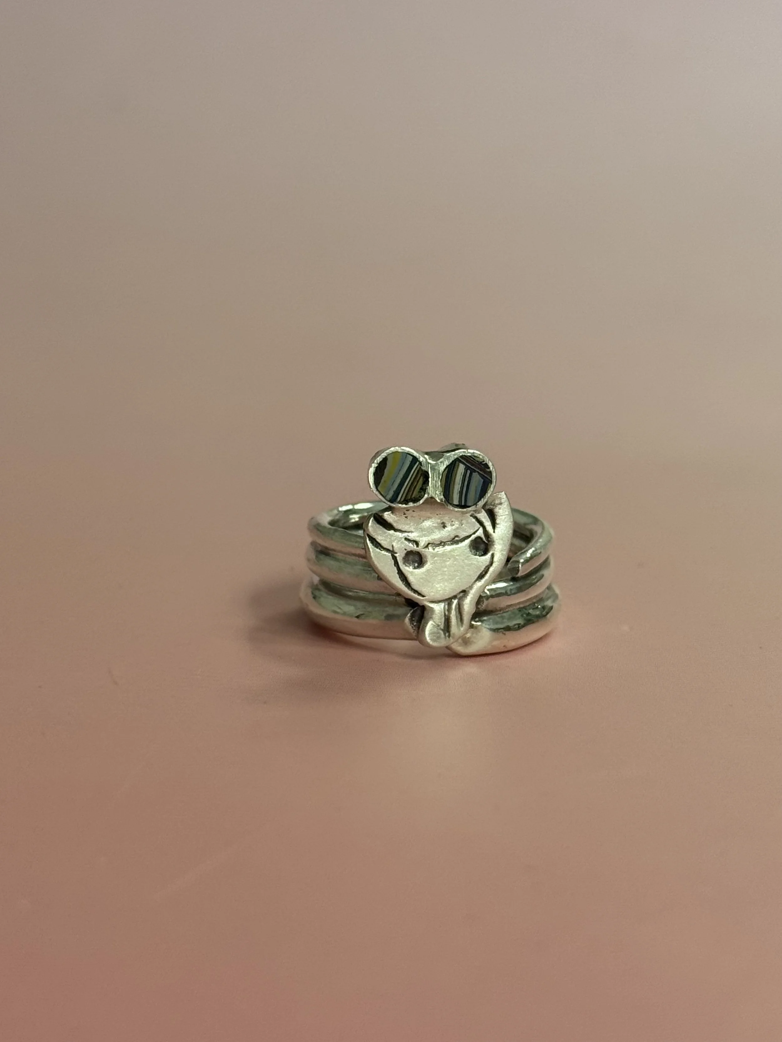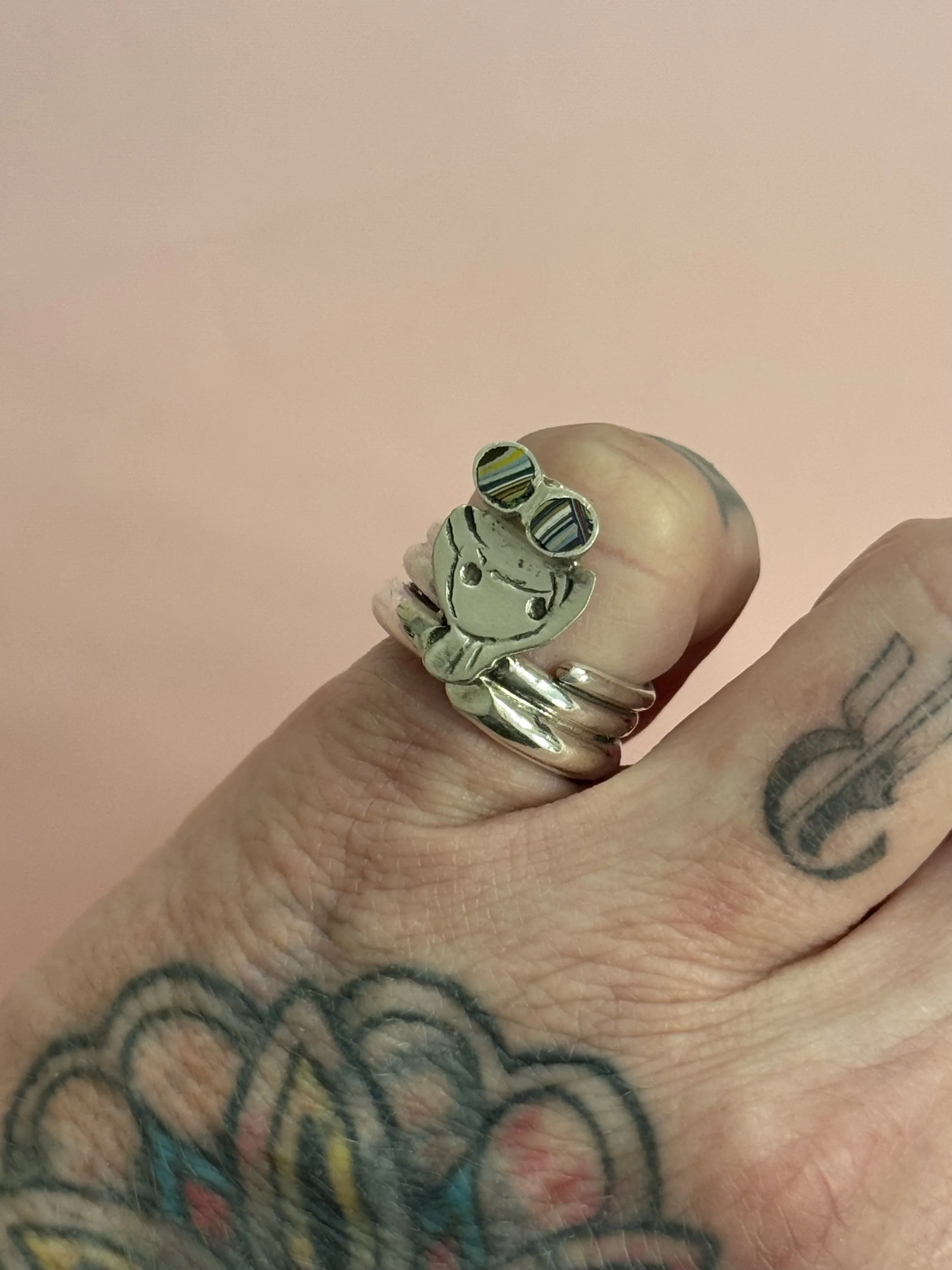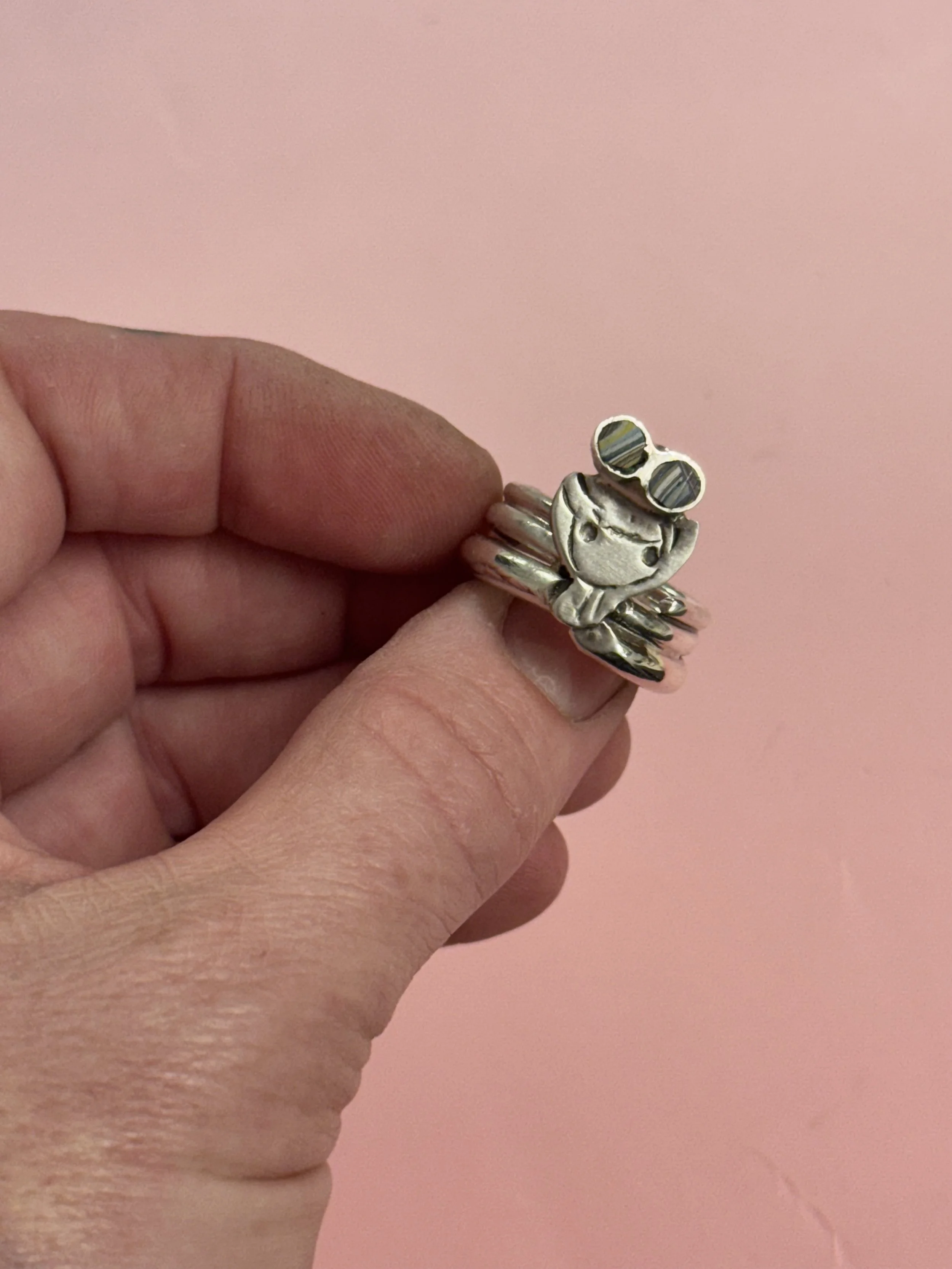 Authentic 1960s Era Detroit Fordite hand cut, shaped and polished and set in a .925 sterling silver signet ring. Size 7. Ready to ship.