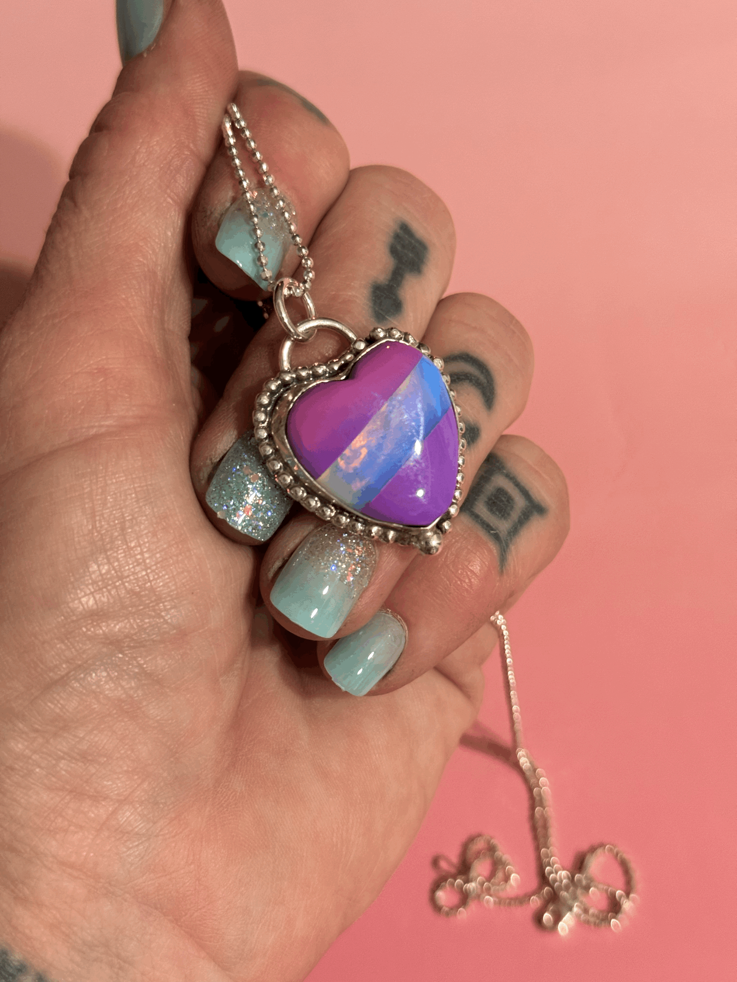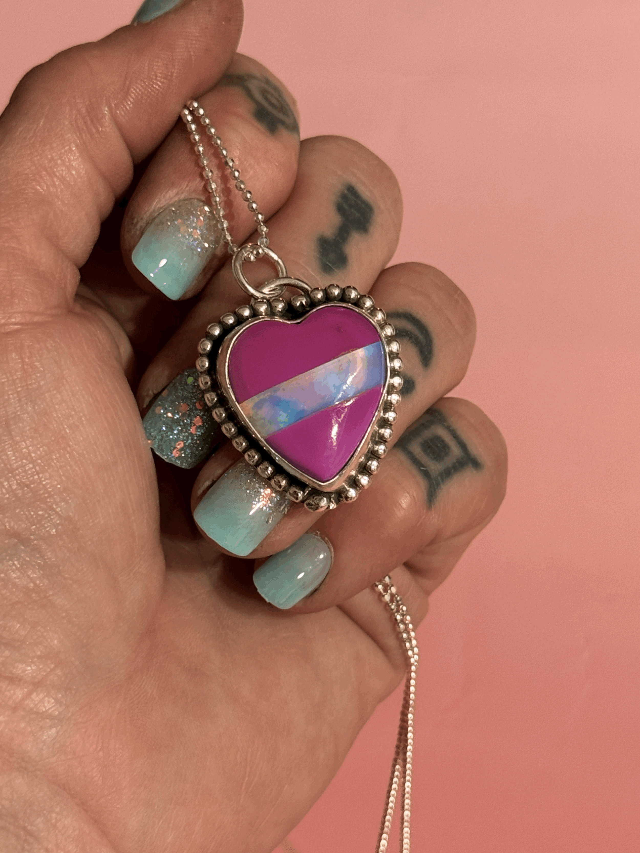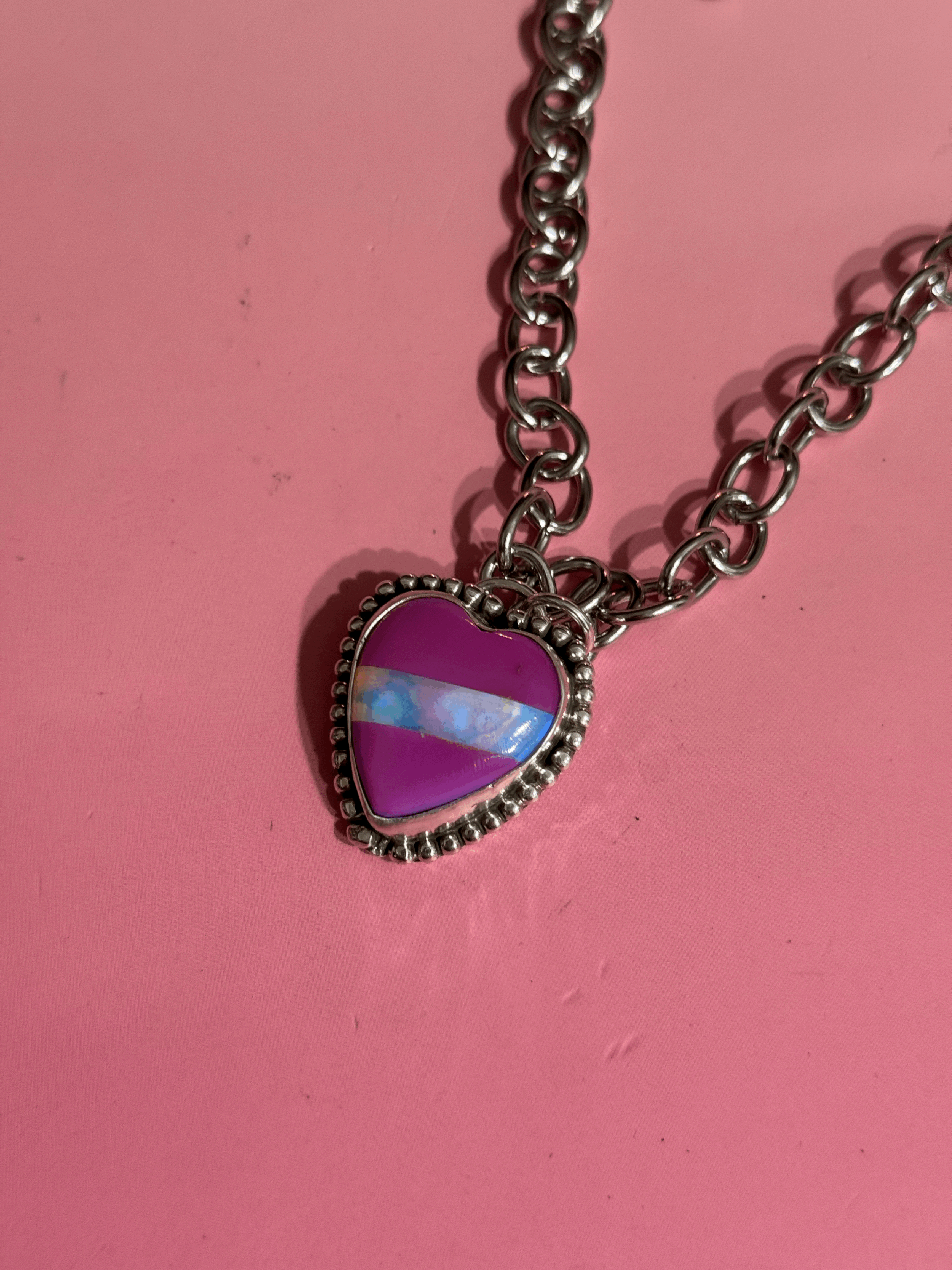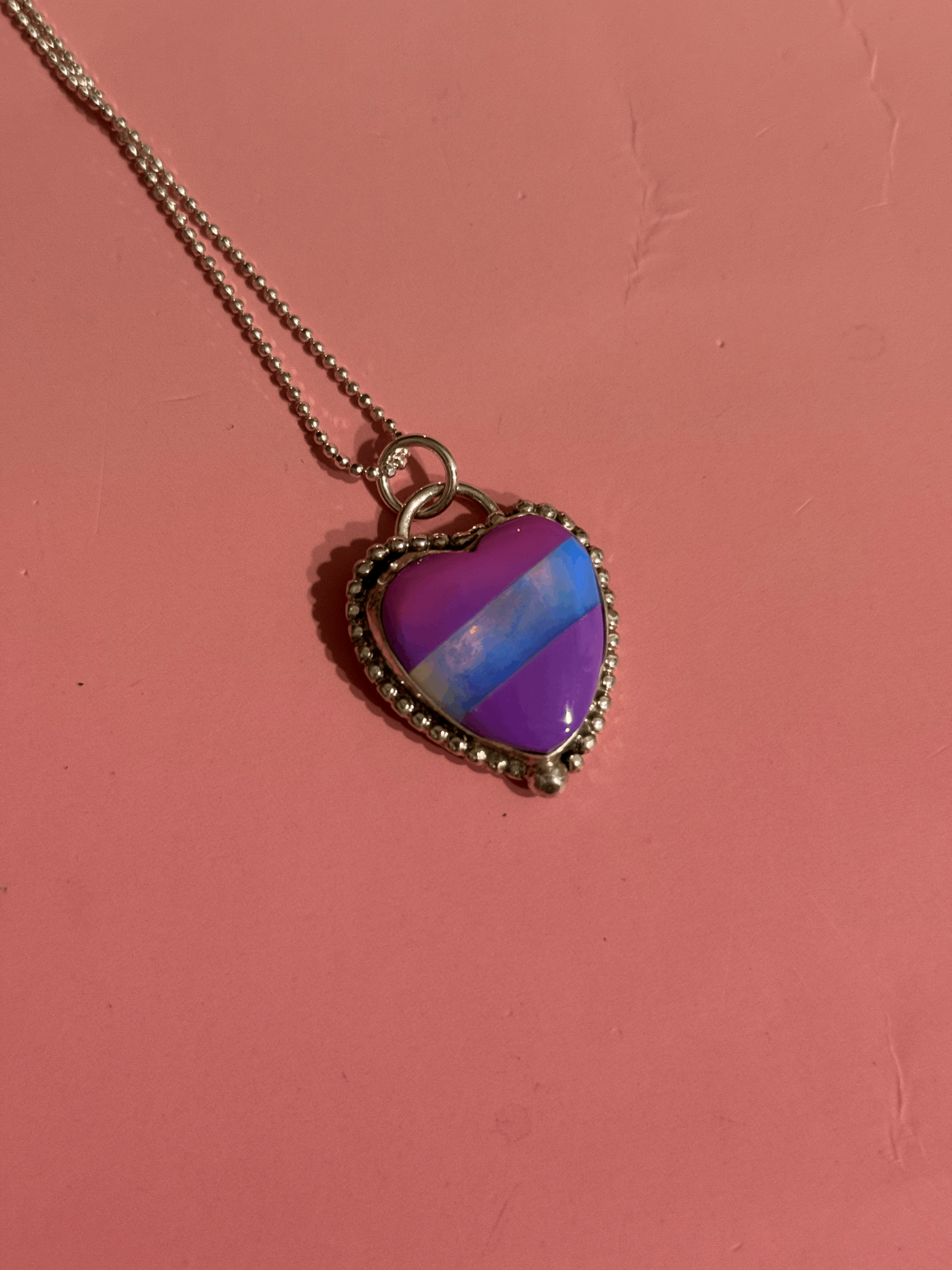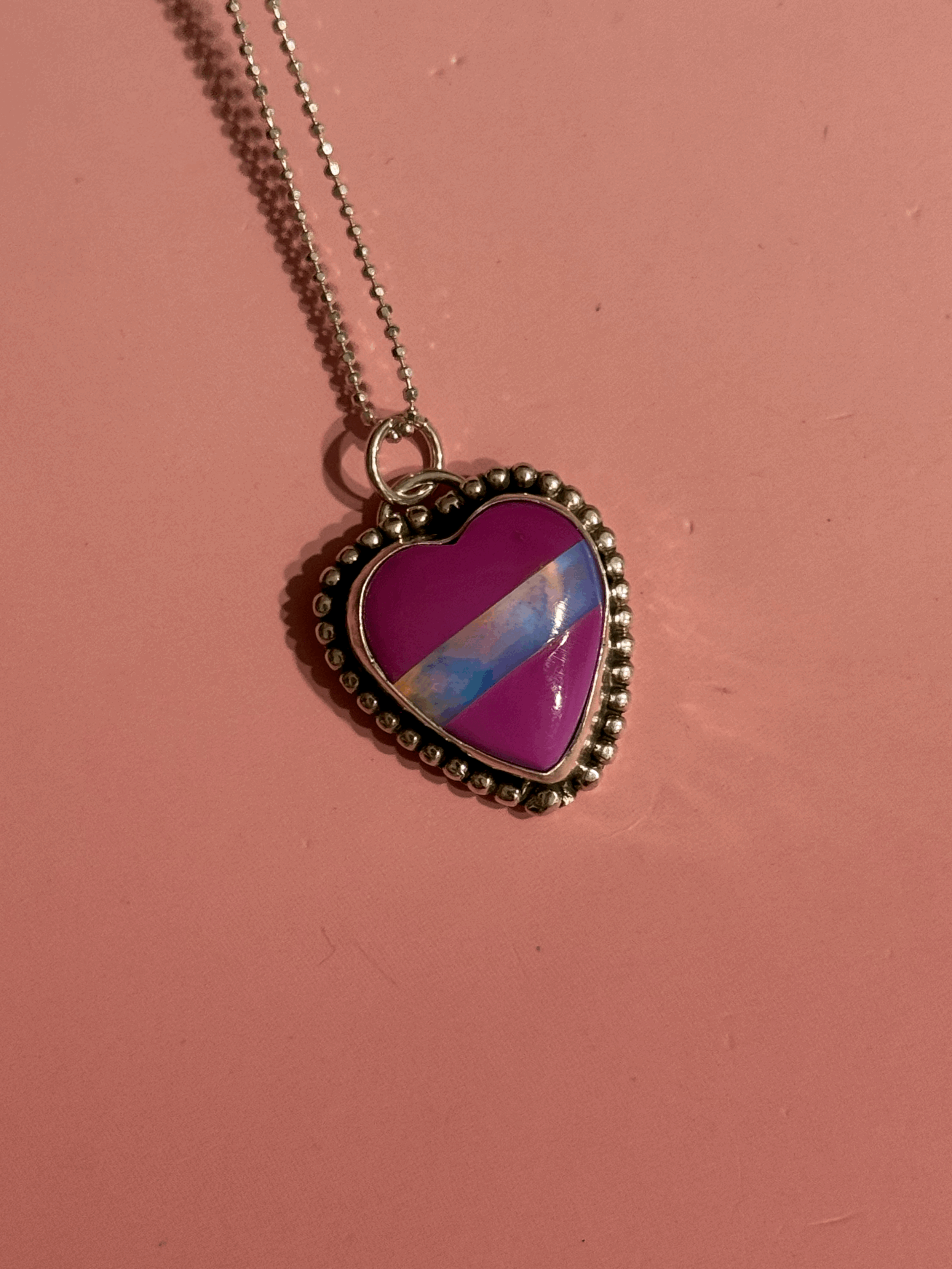 FUCHSIA OMBRE BILLIARD SCRAP AND IRIDESCENT HEART RING SIZE 6