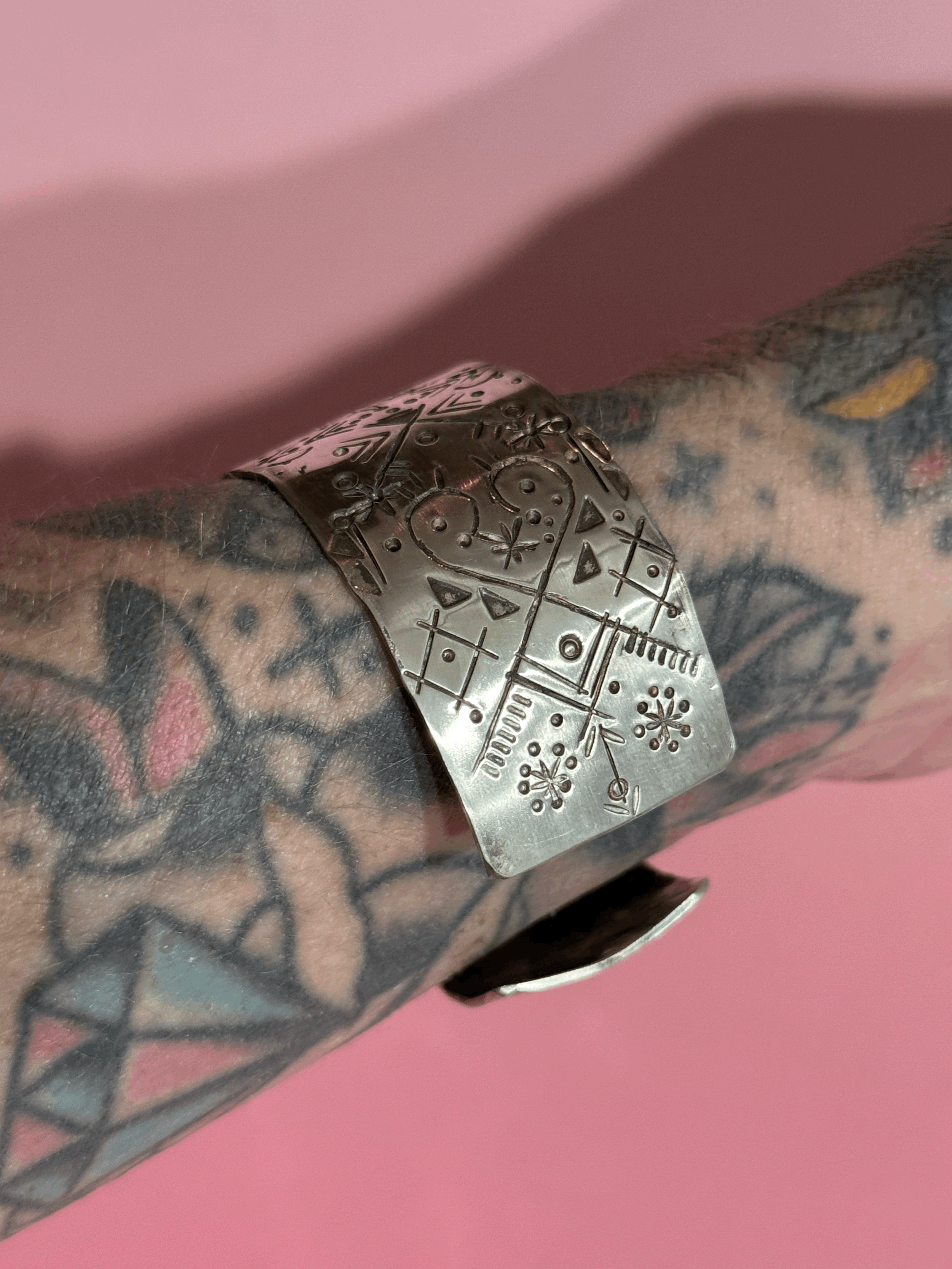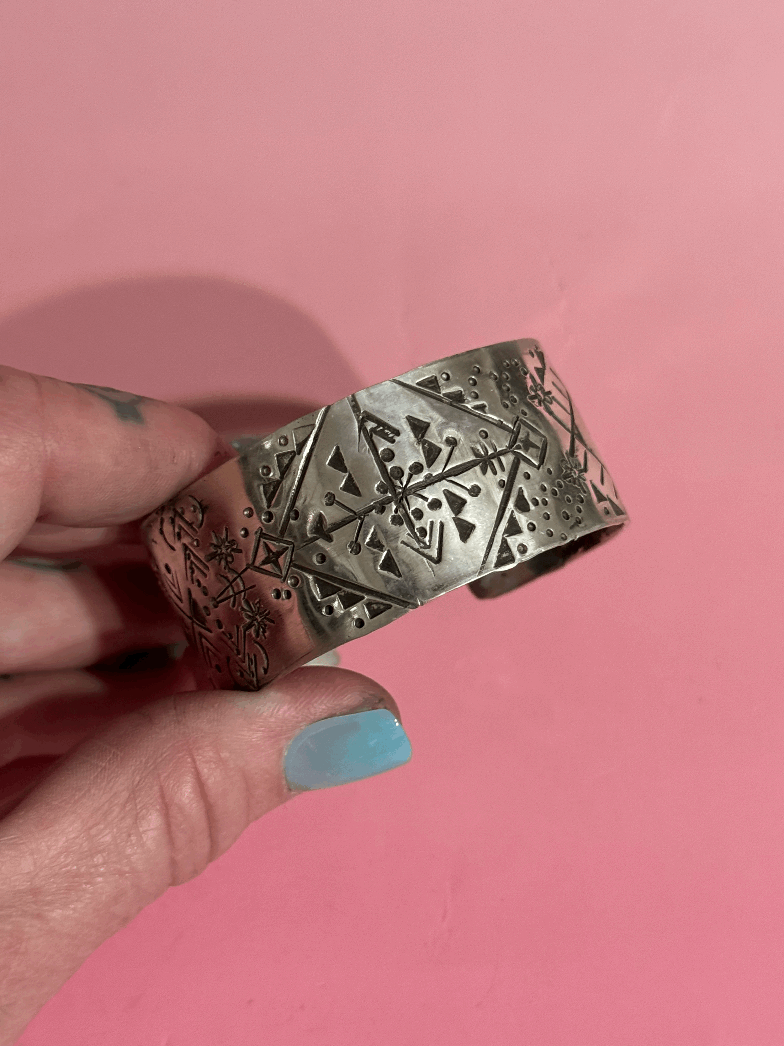 SHOP ONLINE › HANDSTAMPED SILVER SIMPLE TRIBAL INSPIRED BAND - SIZE 8 Image 1 of 4 Image 2 of 4 Image 3 of 4 Image 4 of 4 HANDSTAMPED SILVER SIMPLE TRIBAL INSPIRED BAND - SIZE 8 $130.00 Sold Out .925 STERLING SILVER. 16 GAUGE SILVER, .65” WIDE. SIZE 8 Sold Out Added! .925 STERLING SILVER. 16 GAUGE SILVER, .65” WIDE. SIZE 8 You Might Also Like Quick View HAND STAMPED TRIBAL INSPIRED SILVER CUFF - O/S $220.00 Sold Out