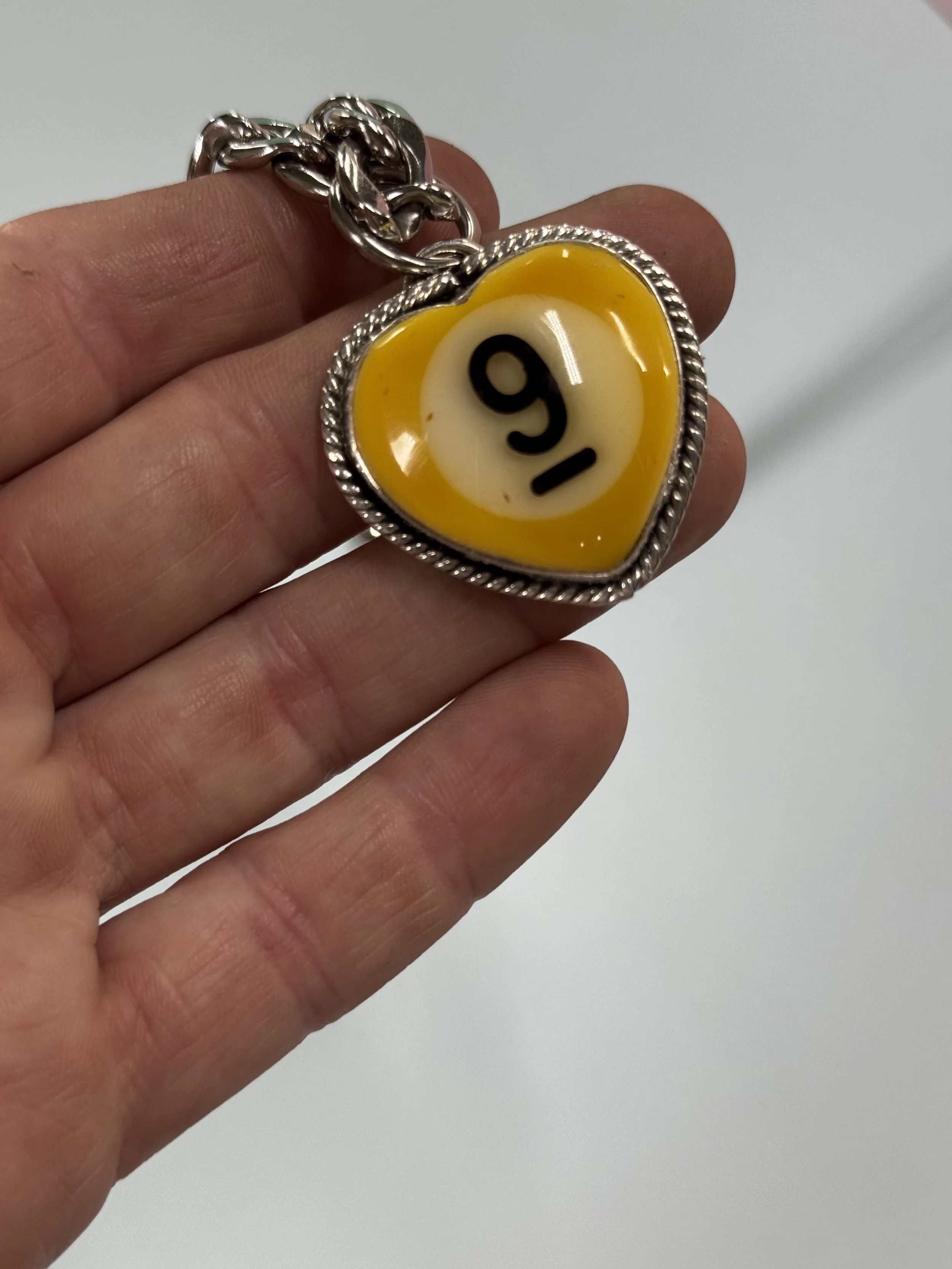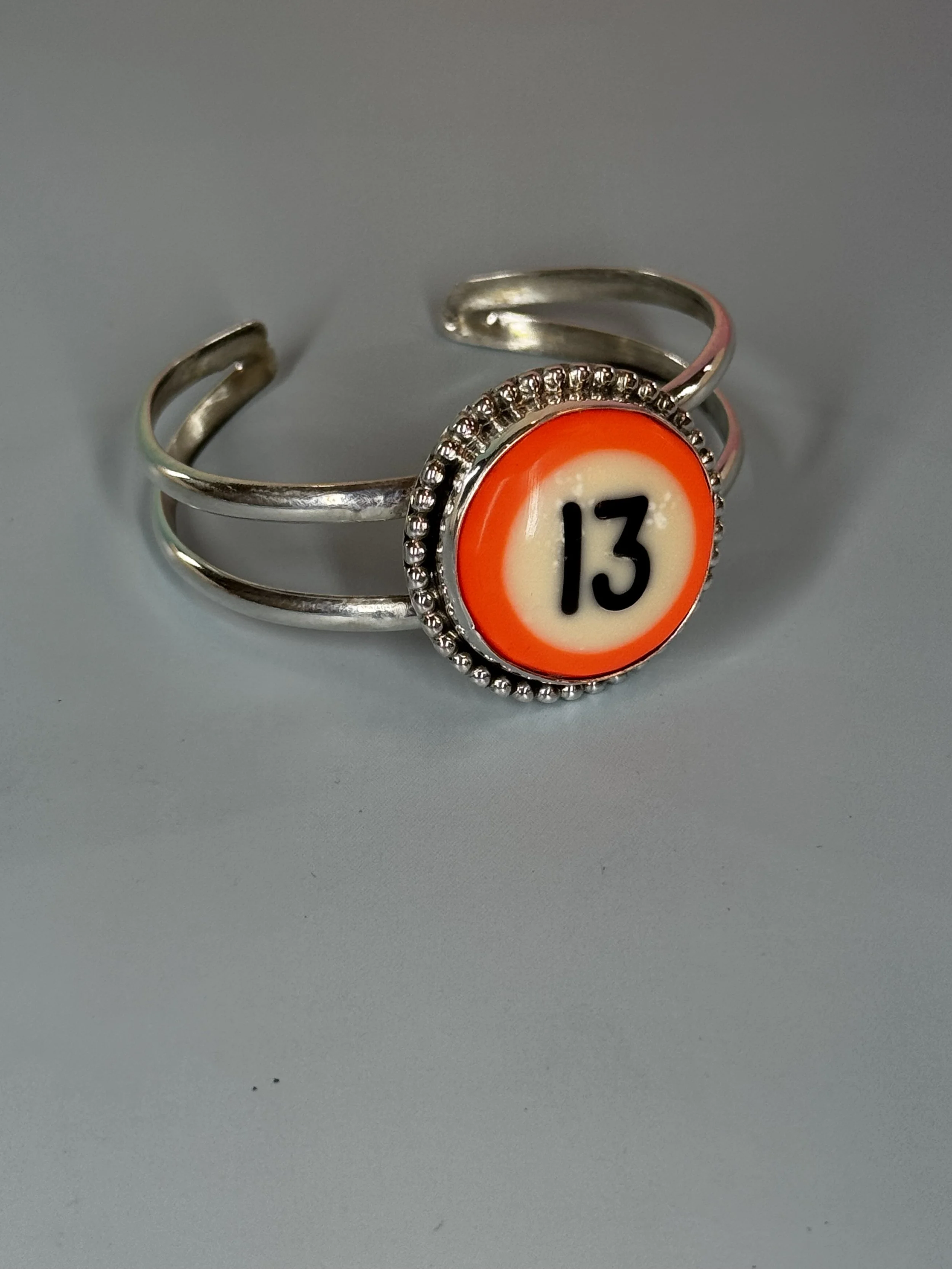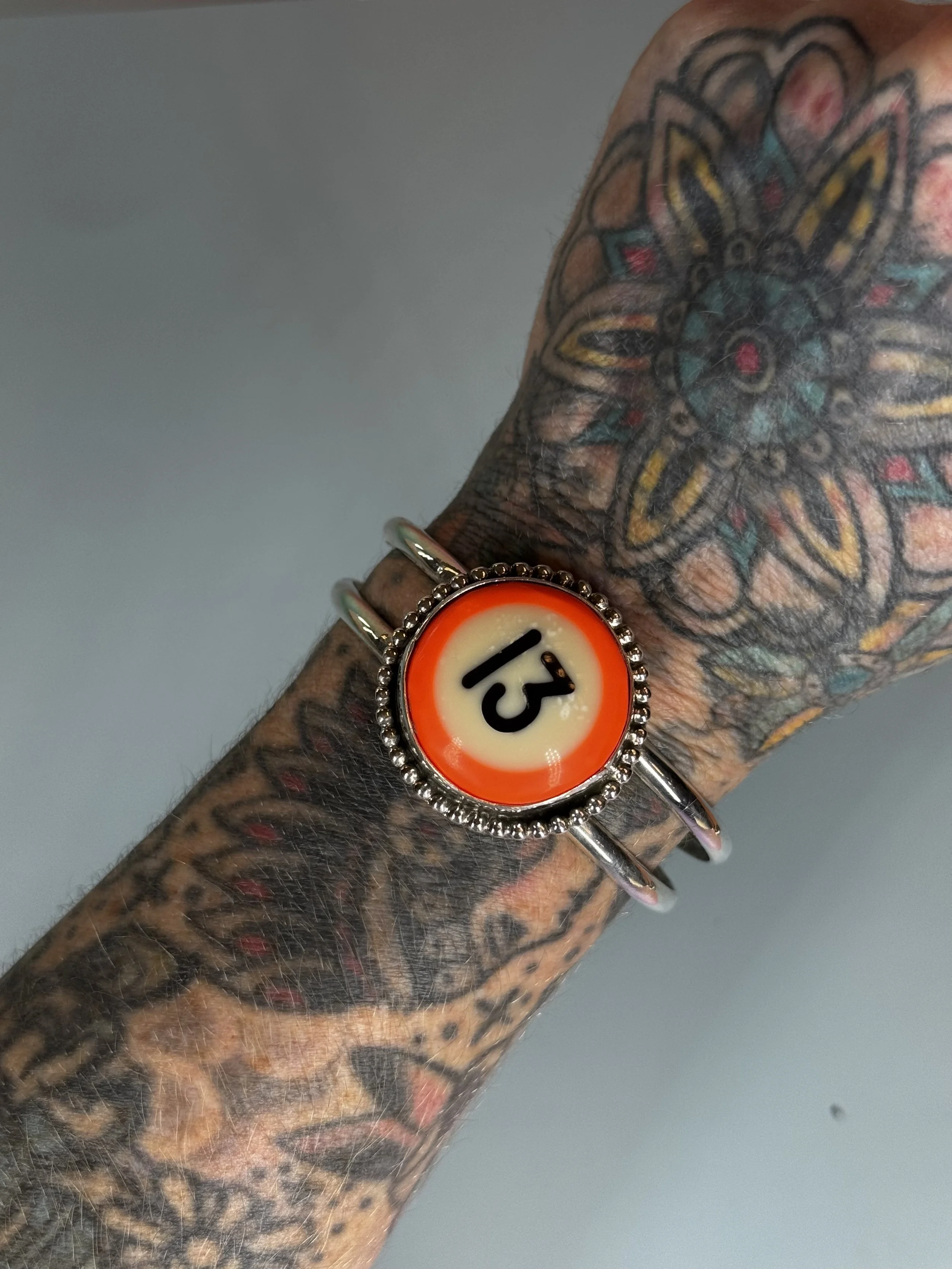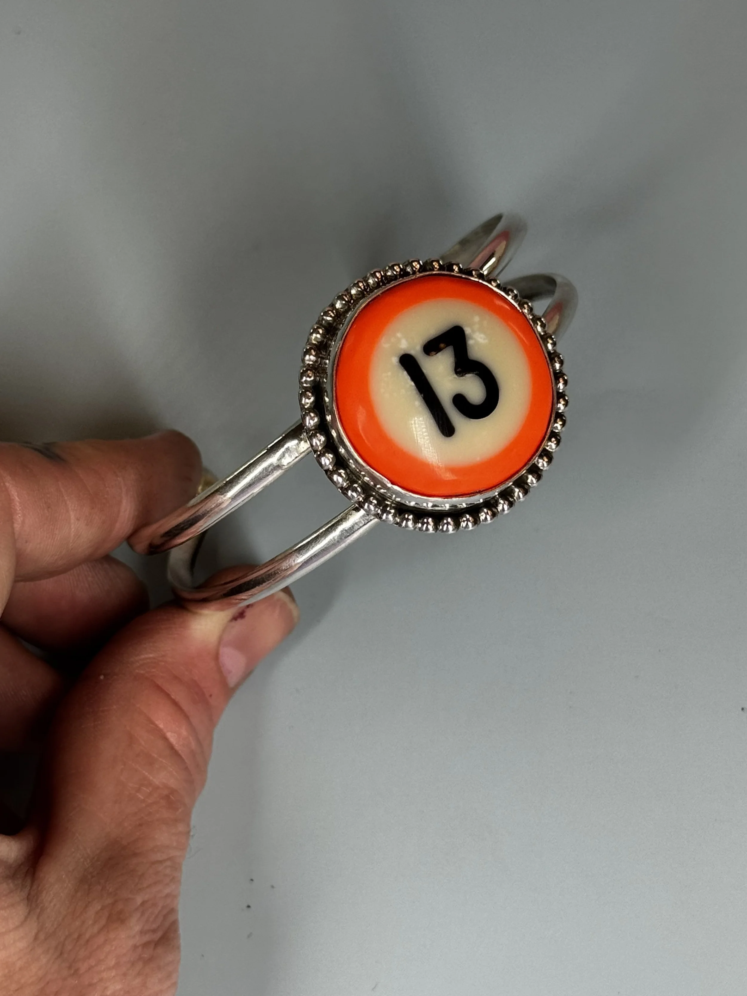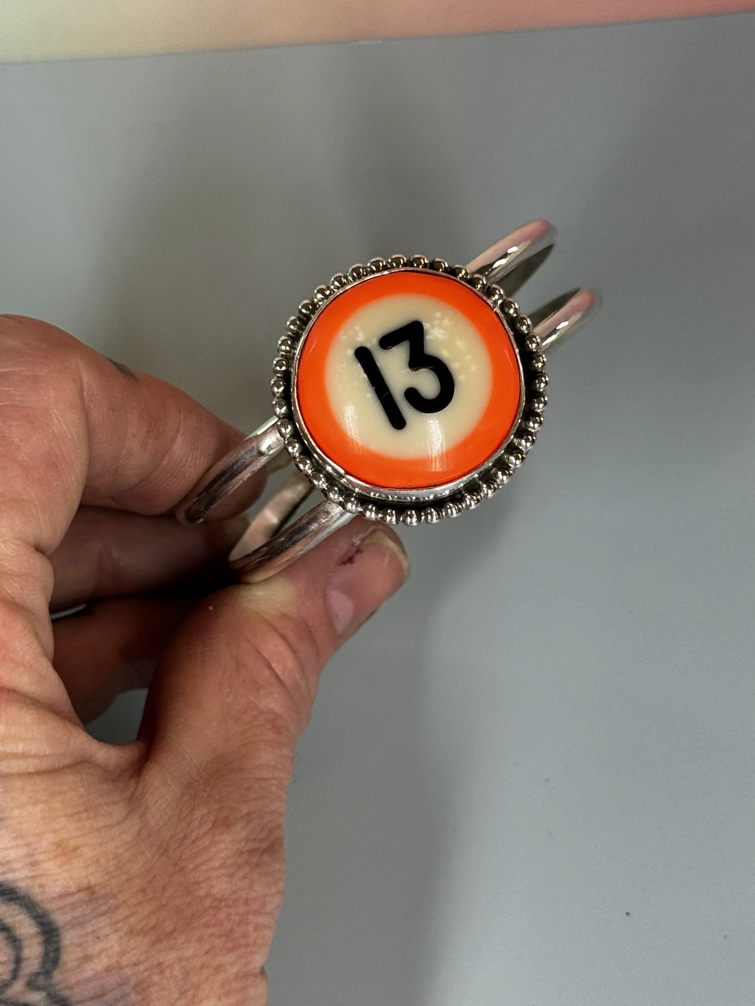 Handcrafted using .925 sterling silver with a signet-style handmade sterling silver band. Hand cut from a vintage maroon 7 ball and shaped into a rounded square, making it a standout piece for anyone who loves to mix timeless style with playful edge. Ring face measures about 1” x 1'“.